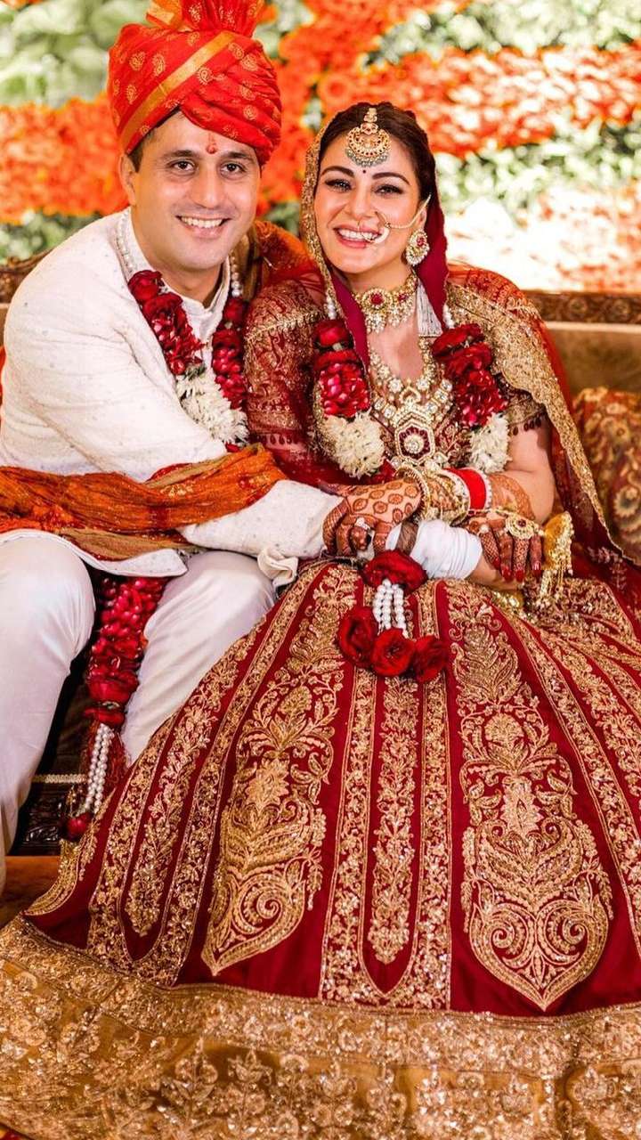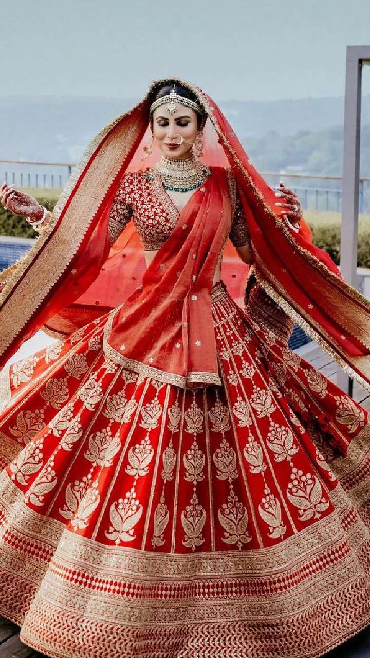 टीवी की नागिन मौनी रॉय भी शादी के सुर्ख लाल जोड़े में बला की खूबसूरत नजर आई थीं।