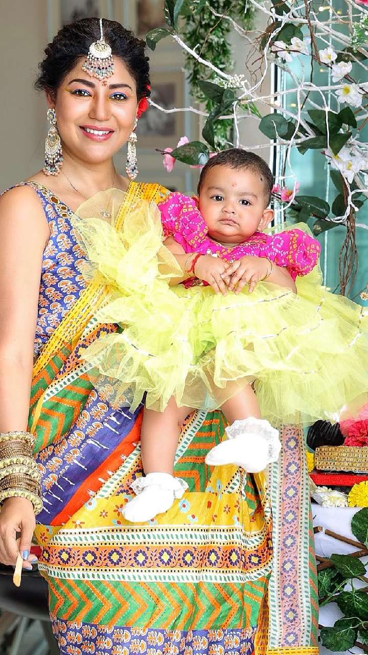 कपल ने अपनी बड़ी बेटी को लहंगा चुन्नी और छोटी बेटी को प्यारी सी फ्रॉक पहनाई है। दोनों बहुत प्यारी लग रहीं हैं।