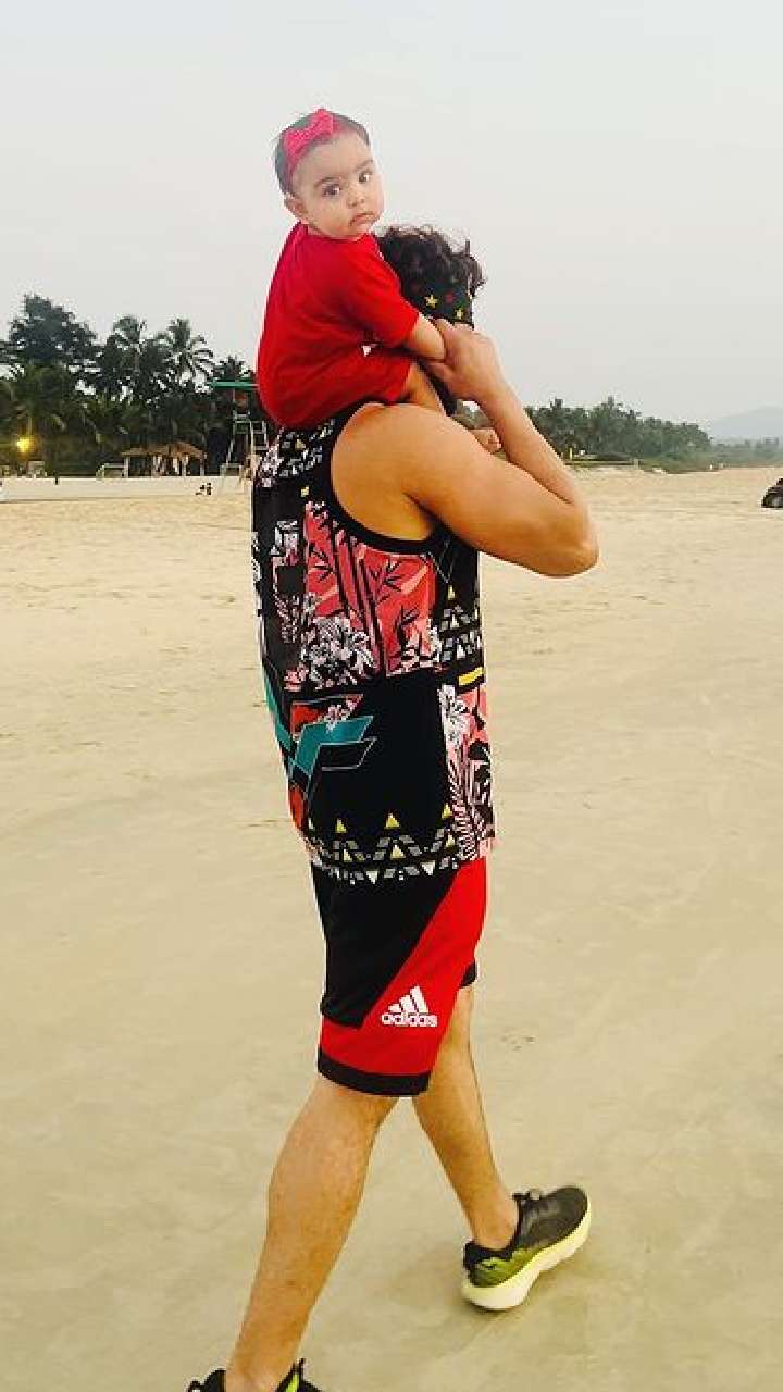 इस फोटो में आप गोवा में समुंदर किनारे पापा बेटी की मस्ती देख सकते हैं।