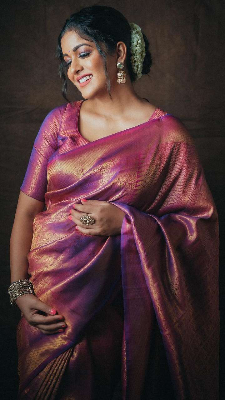 पर्पल कलर की सिल्क साड़ी में इशिता दत्ता का ये लुक काफी ज्यादा शानदार लग रहा है। एक्ट्रेस के इस मेटरनिटी फोटो शूट की हर जगह तारीफ हुई थी।