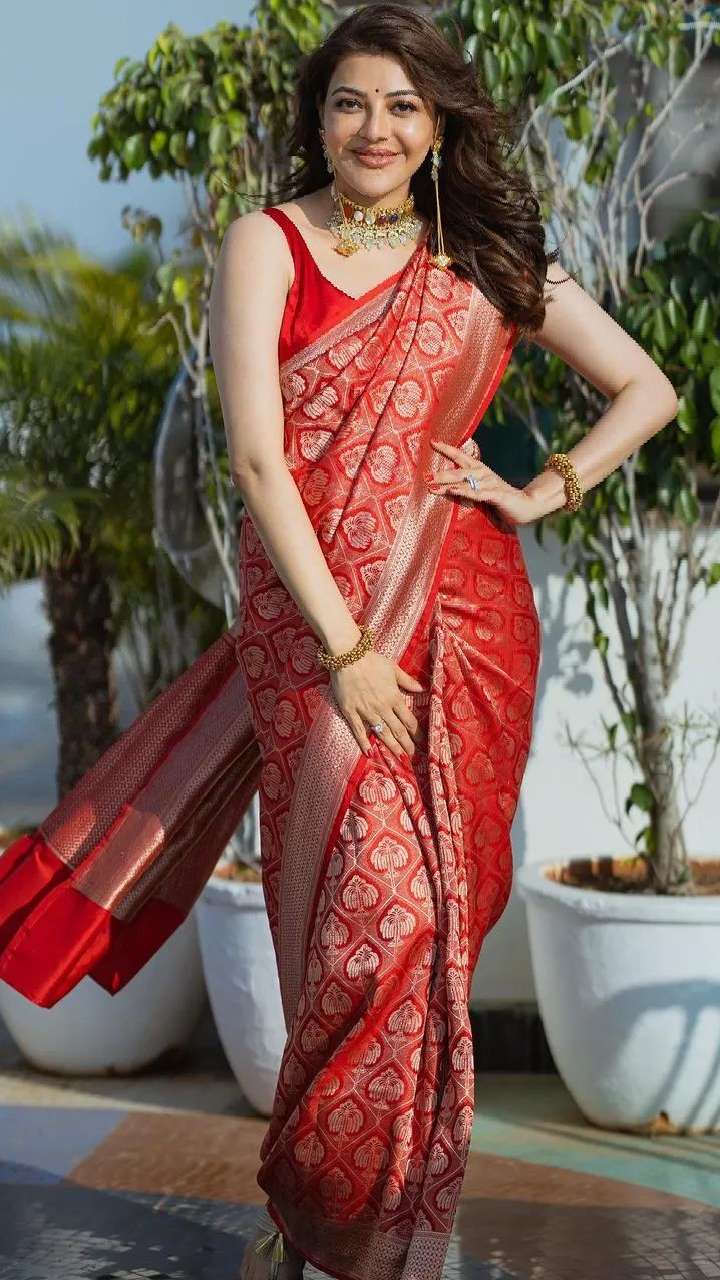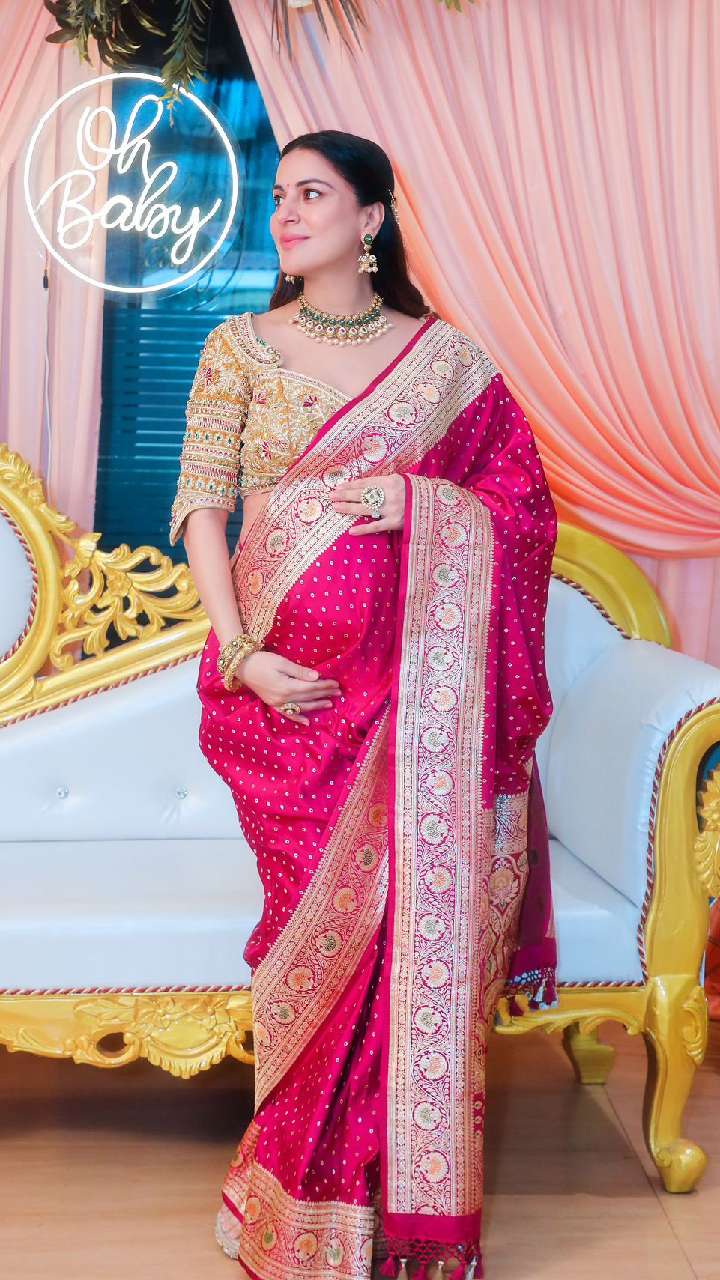 साउथ और हिंदी सिनेमा की फेमस एक्ट्रेस काजल अग्रवाल ने भी रेड कलर की सिल्क साड़ी में अपना बेबी बंप फ्लॉन्ट किया था।