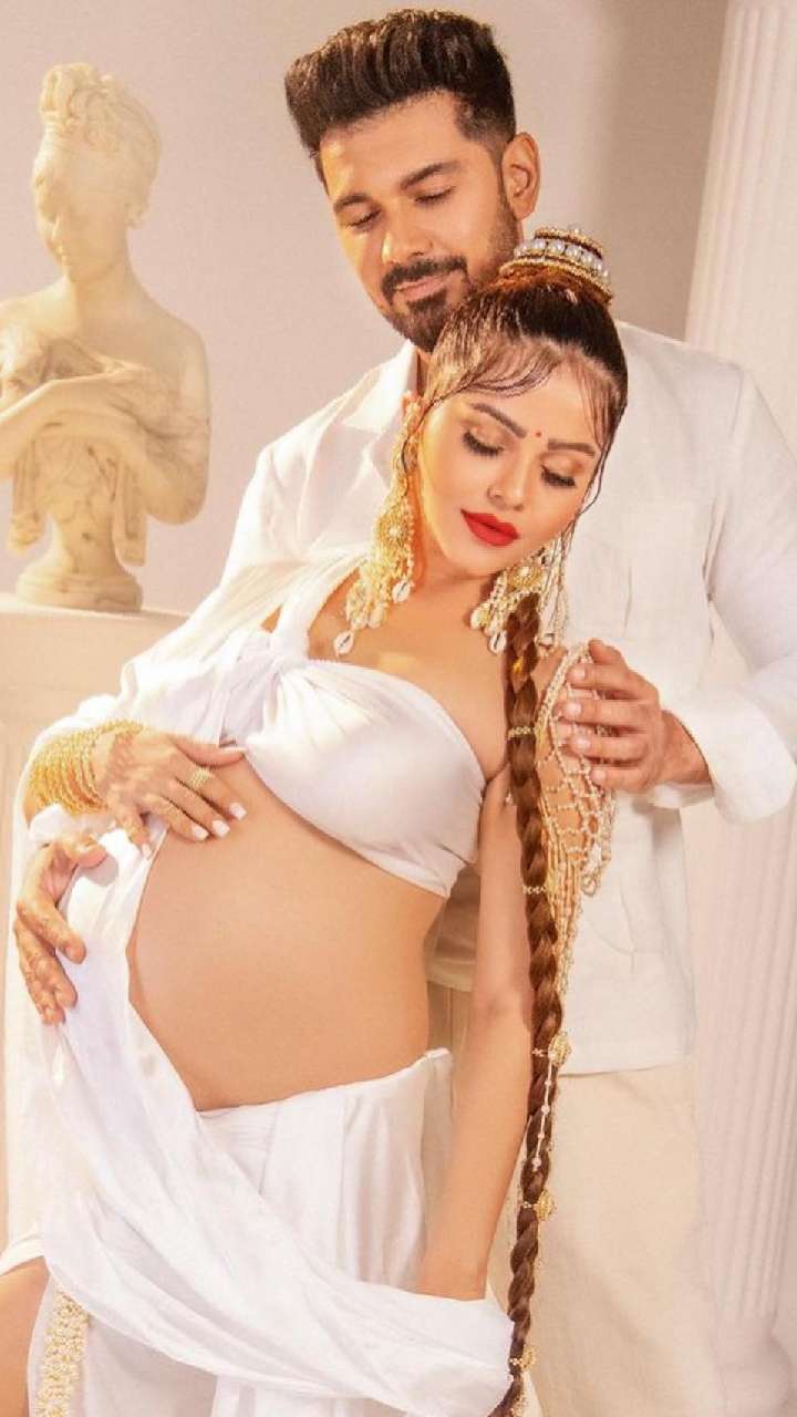 इस लिस्ट में रूबीना दिलैक का नाम भी शामिल है। एक्ट्रेस ने व्हाइट कलर की साटन साड़ी में अपना बेबी बंप फ्लॉन्ट किया था।