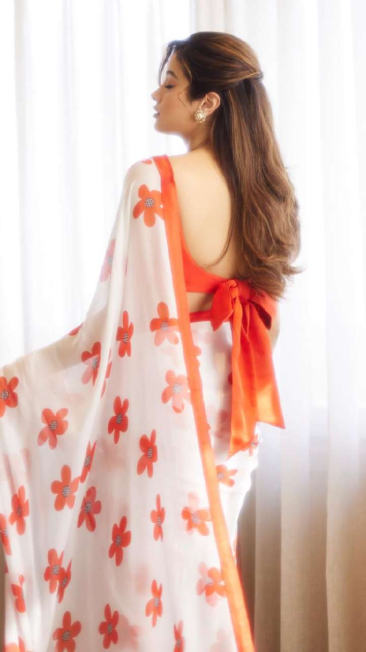 अगर आप ब्लाउज के बैक लुक को स्टाइलिश और बनवाने का सोच रही हैं, तो एक्ट्रेस के इस बो डिजाइन वाले ब्लाउज को ऑप्शन में रख सकती हैं।