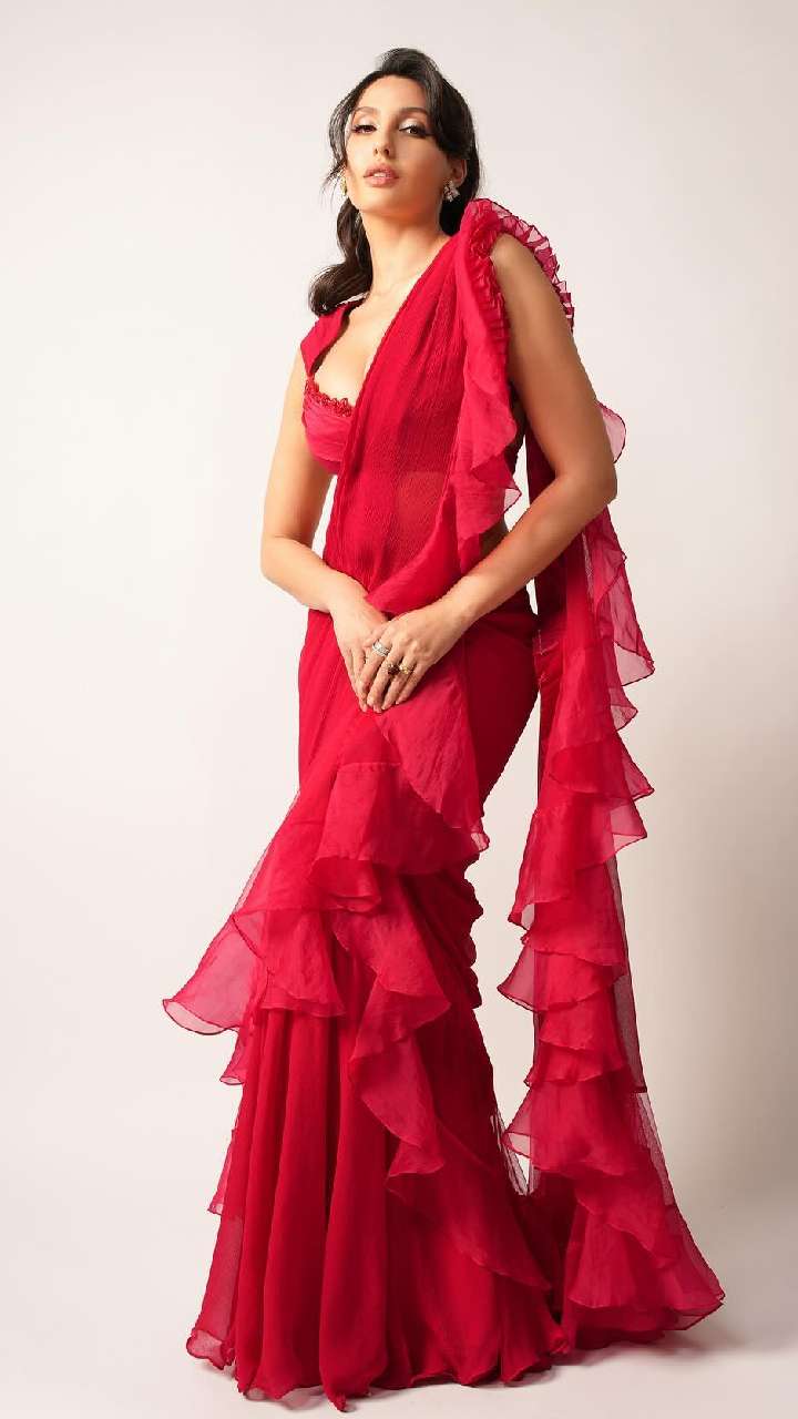 अगर आपकी मम्मी स्टाइलिश और मॉडर्न है, तो इस तरह की रफल साड़ी को चुन सकते हैं। ऐसी साड़ियां लुक को खूबसूरत बना देती हैं।