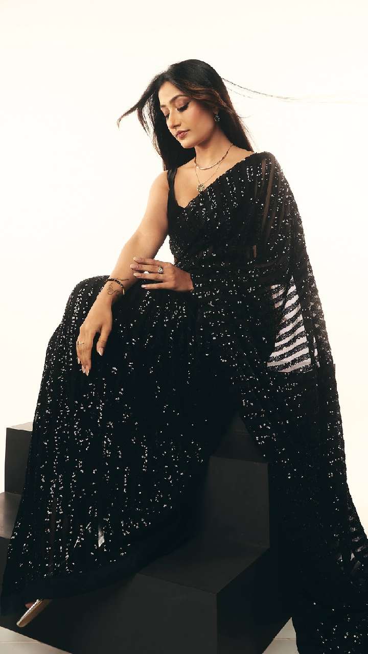 ब्लैक लवर्स के लिए धनश्री वर्मा का ये साड़ी-ब्लाउज लुक परफेक्ट है। आप भी इस तरह के लुक को पार्टी में कैरी कर सकती हैं।