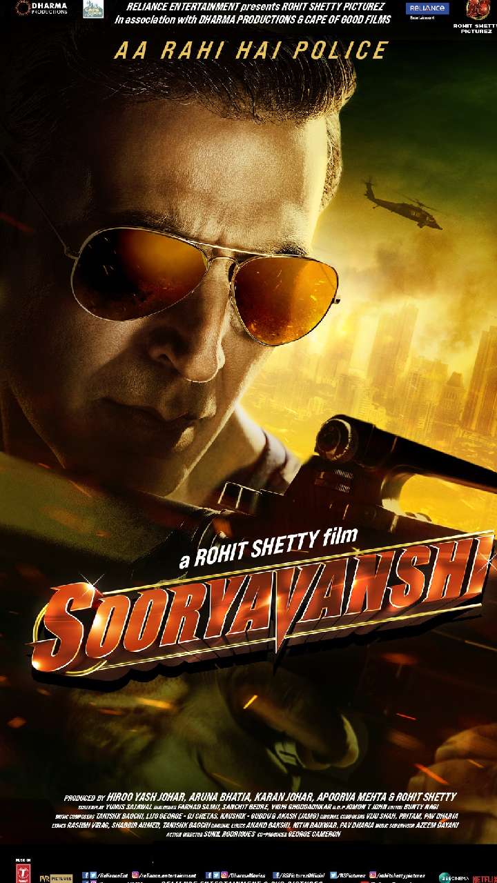 सूर्यवंशी साल 2021 की एक्शन फिल्म है, जिसे रोहित शेट्टी और करण जौहर के प्रोडक्शनंस के बैनर तले बनी है। इसमें अक्षय कुमार, अजय देवगन और रणवीर सिंह मुख्य रोल में है। बता दें कि इस फिल्म ने आते ही खूब कमाई की थी।