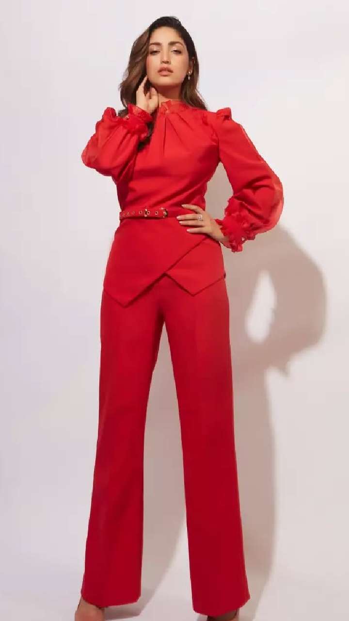 रेड कलर के को-ऑर्ड सेट में यामी गौतम का लुक बॉसी और क्लासी लग रहा है। इस तरह के आउटफिट ऑफिस के लिए एकदम बेस्ट है।