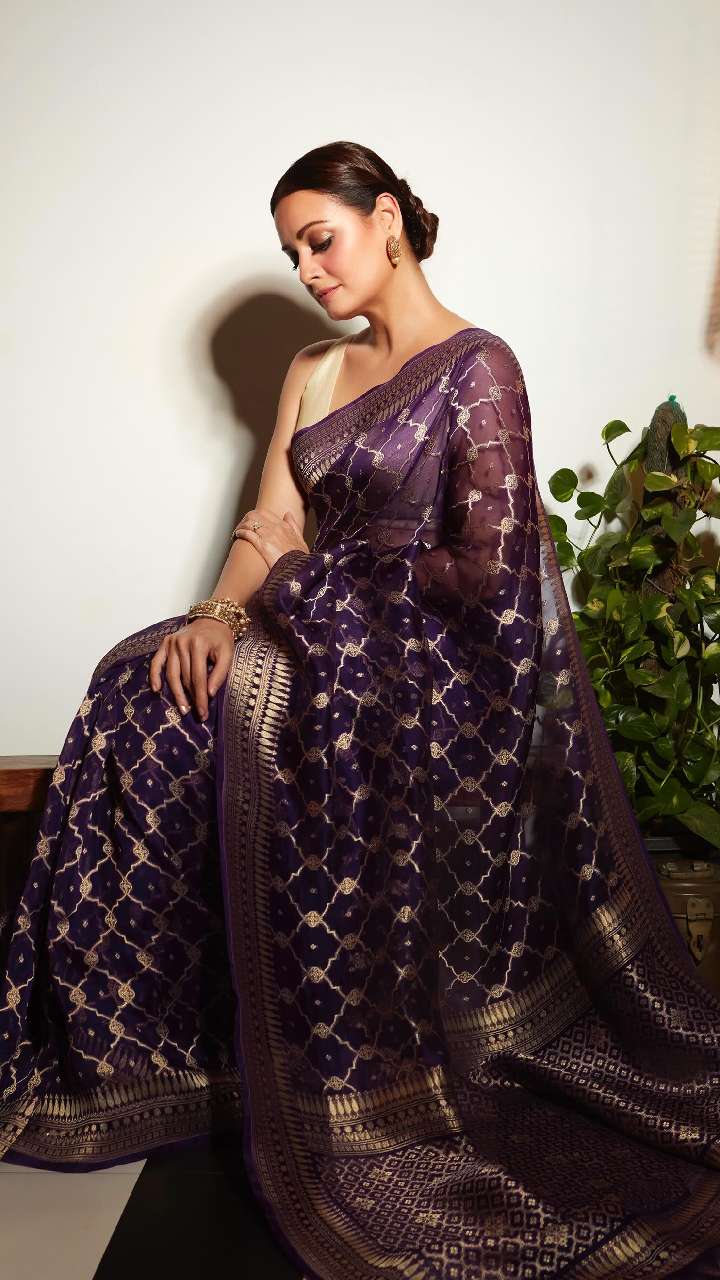 दीया मिर्जा का ये पर्पल साड़ी लुक भी बेहद शानदार लग रहा है। आप भी इस साड़ी को कैरी कर अपने लुक में चार चांद लगा सकती हैं।