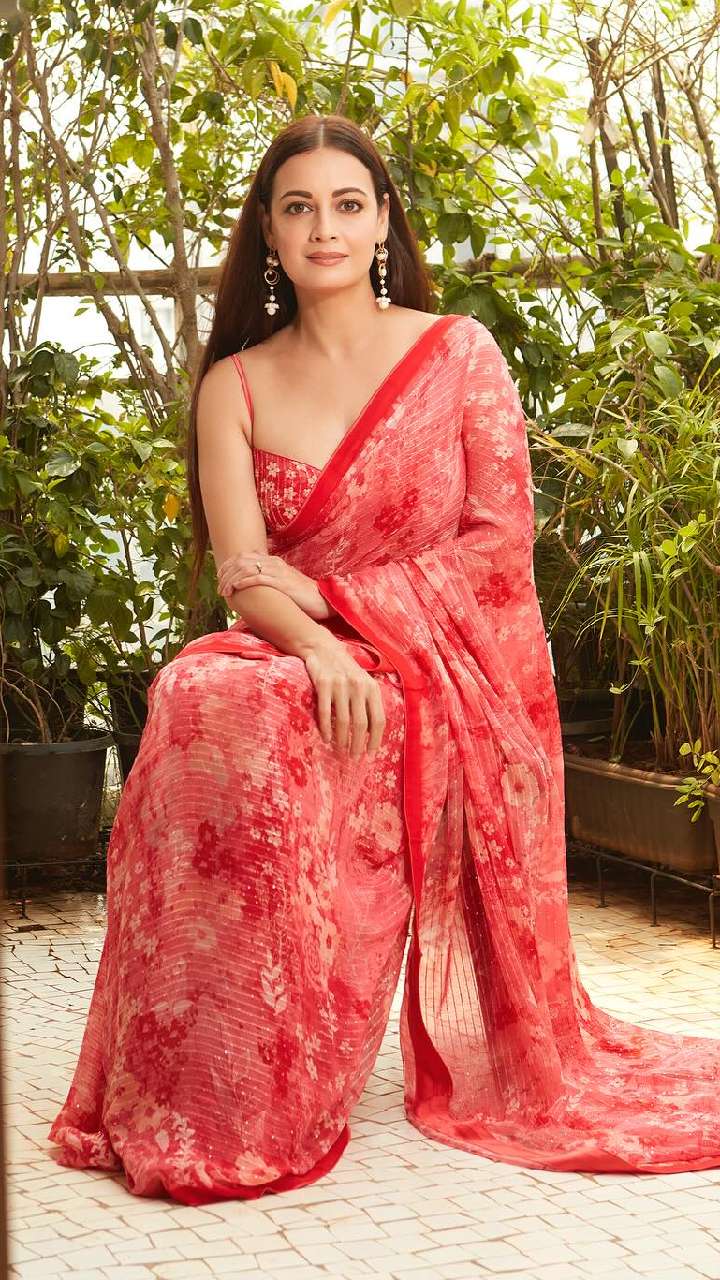 रेड कलर की फ्लावर प्रिंटेड साड़ी में भी एक्ट्रेस का ये लुक काफी ज्यादा प्यारा है। आप दीया की इस साड़ी लुक को भी कॉपी कर सकती हैं।