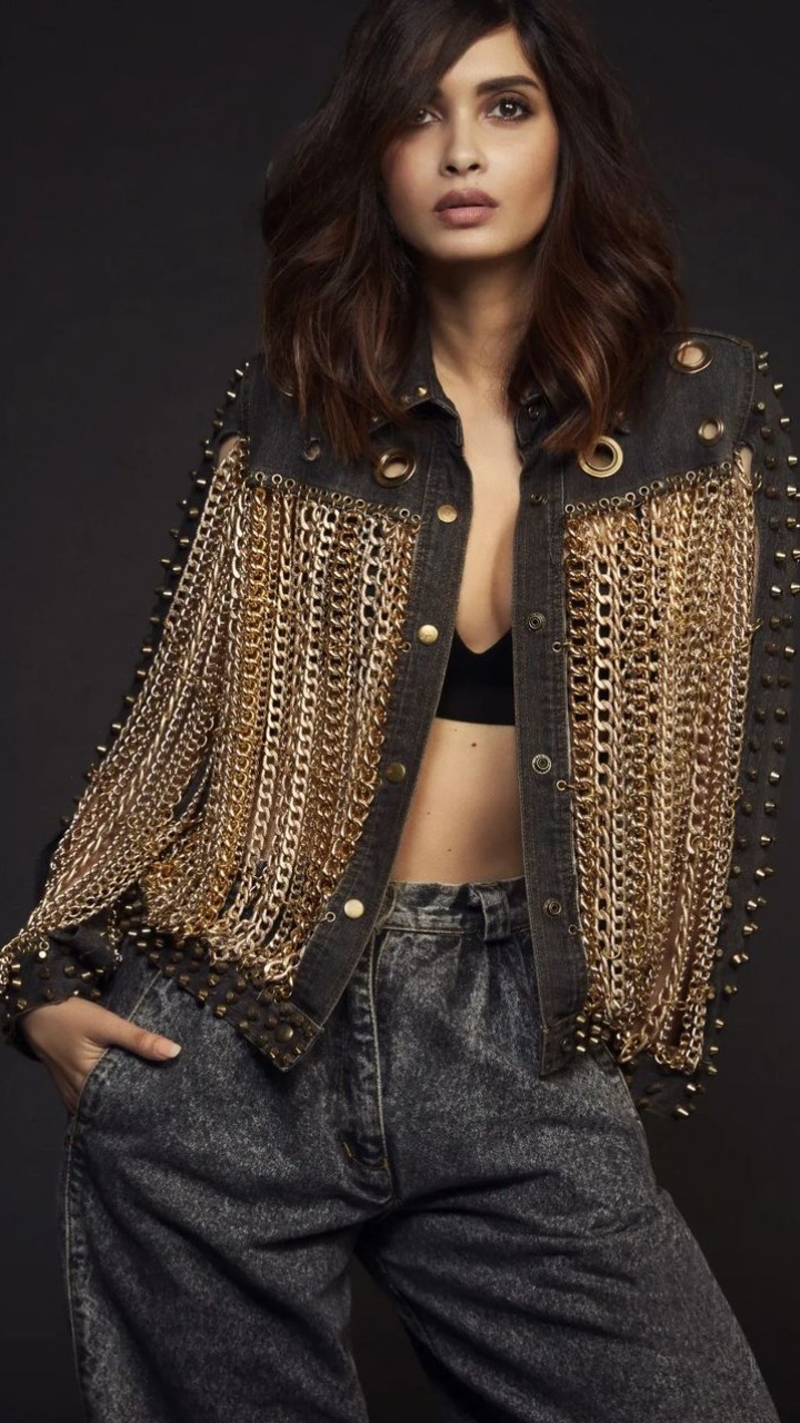 डेनिम जैकेट में डायना ने चेन का ट्विस्ट दिया है जो उनके लुक को अट्रैक्टिव बना रहा हैं।