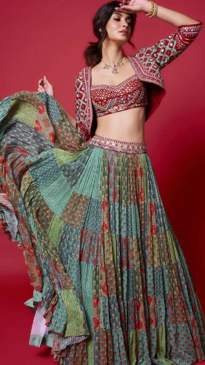 डायना पेंटी का ये क्रेप स्टाइल लहंगा लुक काफी ज्यादा ट्रेंड में चल रहा है। डीप नेक ब्लाउज के साथ एक्ट्रेस ने क्रेप पेयर किया है।