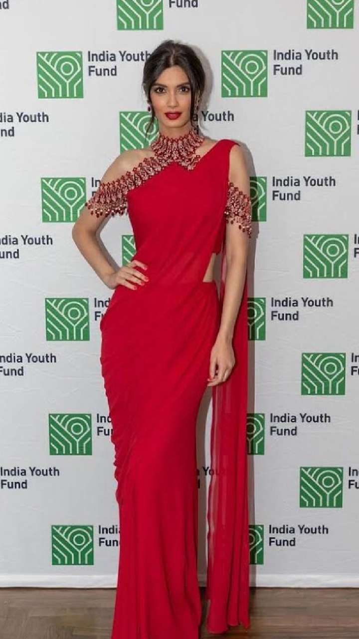 डायना गोल्डन कलर की सिक्विन वर्क साड़ी जीरो नेक ब्लाउज में अपनी बोल्डनेस से फैंस को दीवाना बना रही हैं। आप भी उनके इस लुक को कॉपी कर सकती हैं।