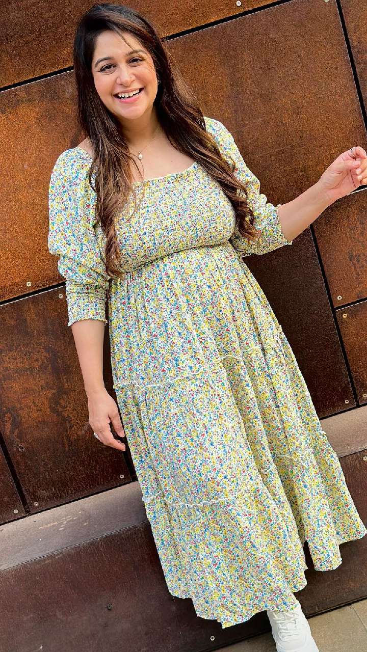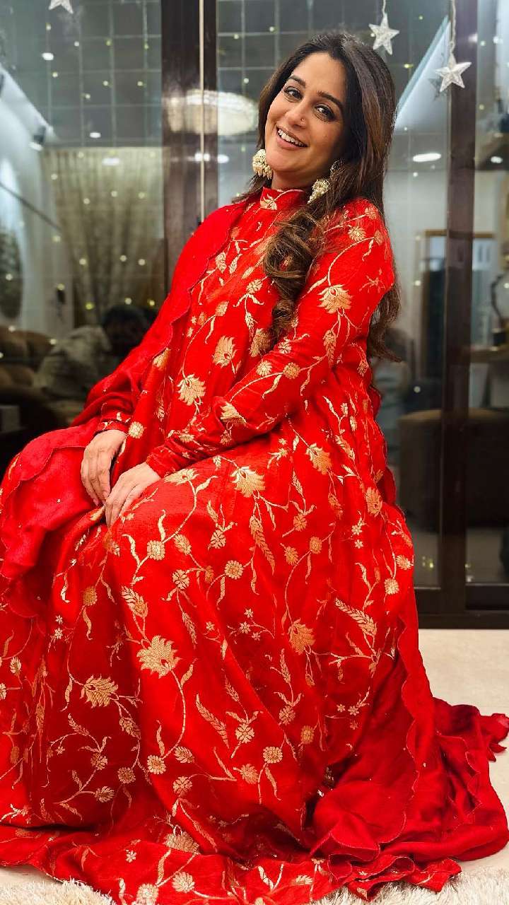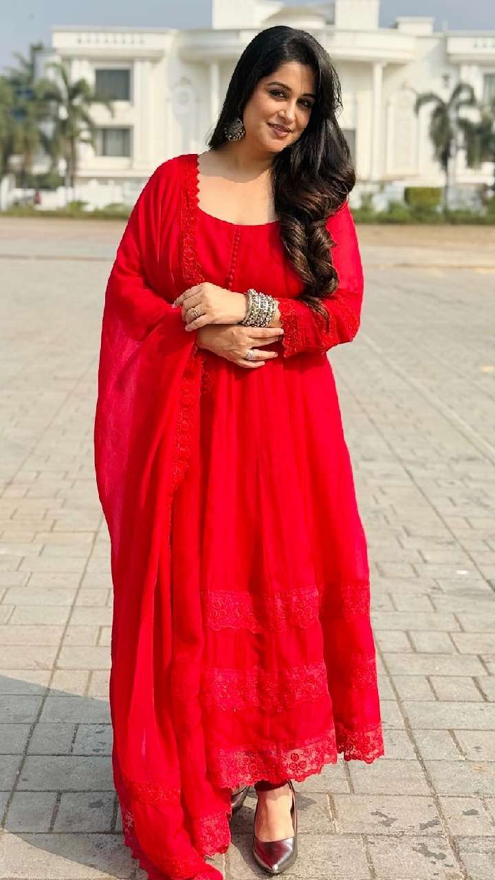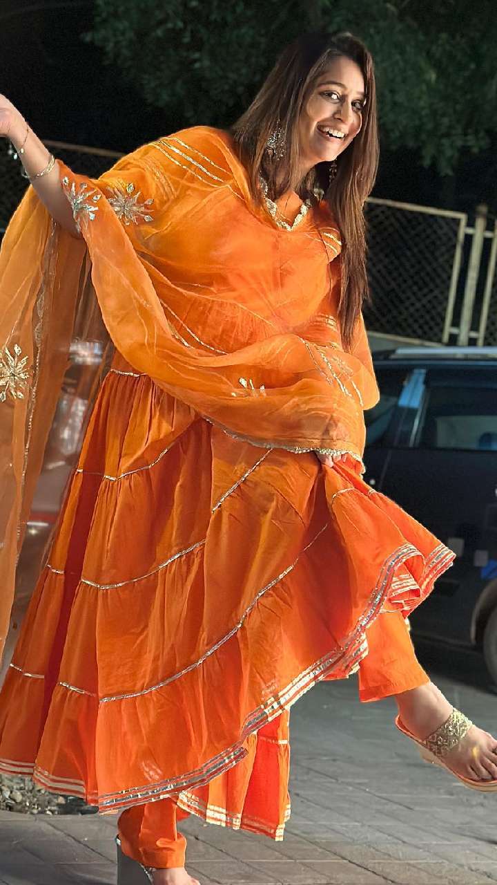 दीपिका कक्कड़ ऑरेंज कलर के फ्रॉक स्टाइल सूट में ब्यूटीफुल लग रही हैं। उन्होंने सूट के साथ हैवी इयररिंग्स कैरी किए हैं। आप भी उनके इस लुक को कॉपी कर सकती हैं।