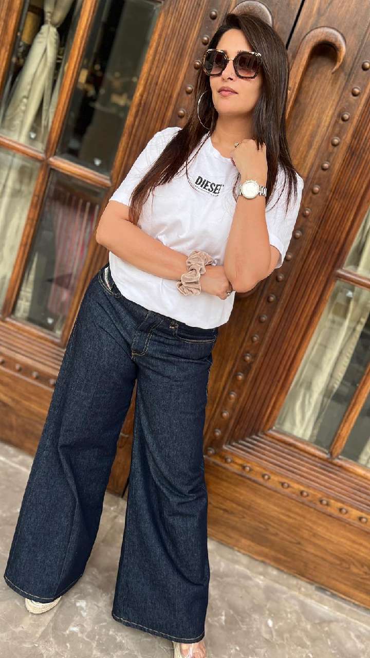 38 की उम्र में स्टाइलिश दिखने के लिए टी-शर्ट और जींस बेस्ट ऑप्शन होता है। इसमें एक्ट्रेस बहुत ही सुंदर नजर आ रही हैं।
