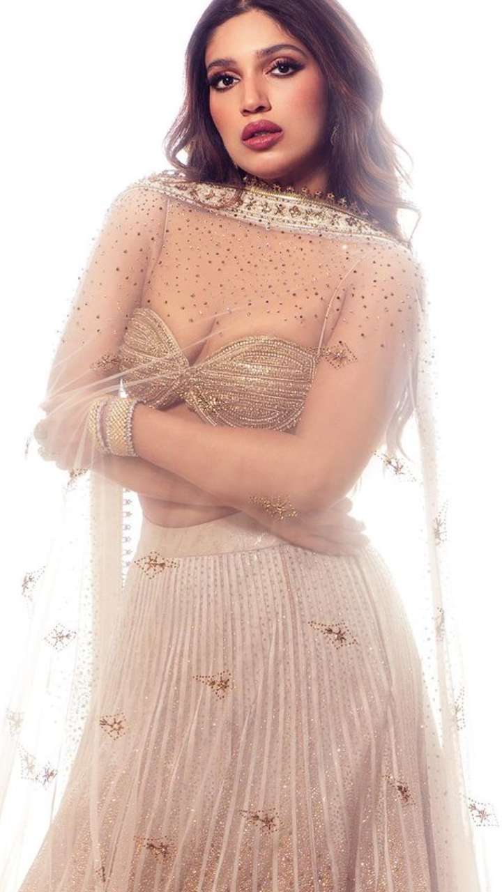 अभिनेत्री इस हैवी वर्क घेर वाले शरारा फ्रंट कट सूट में बला की खूबसूरत लग रही हैं। न्यूली मैरिड डीवा के इस लुक को ईद पर कॉपी कर सकती हैं।