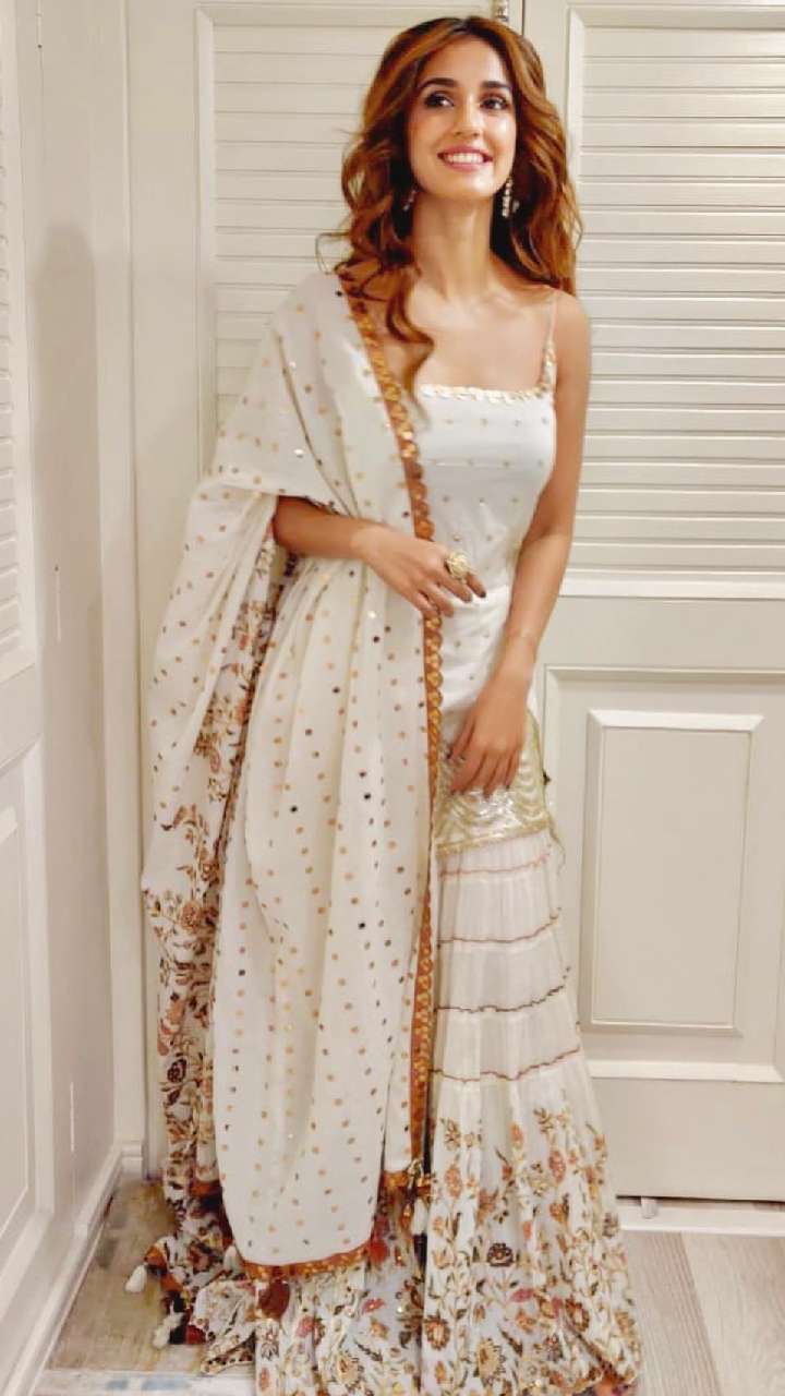 इस व्हाइट कलर की नेटिड साड़ी में दिशा काफी गॉर्जियस लग रही हैं।