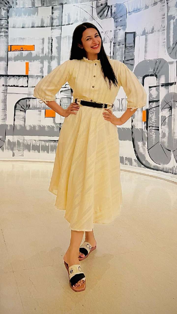 दिव्यांका का हाई नेक ड्रेस लुक भी स्मार्ट लग रहा है। गर्मियों के लिए ऐसी लाइट कलर कॉटन ड्रेस बेस्ट रहती हैं।