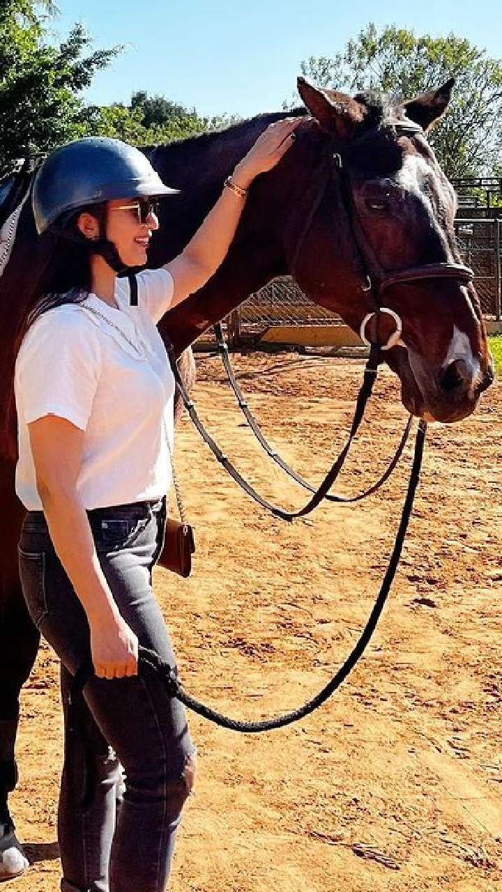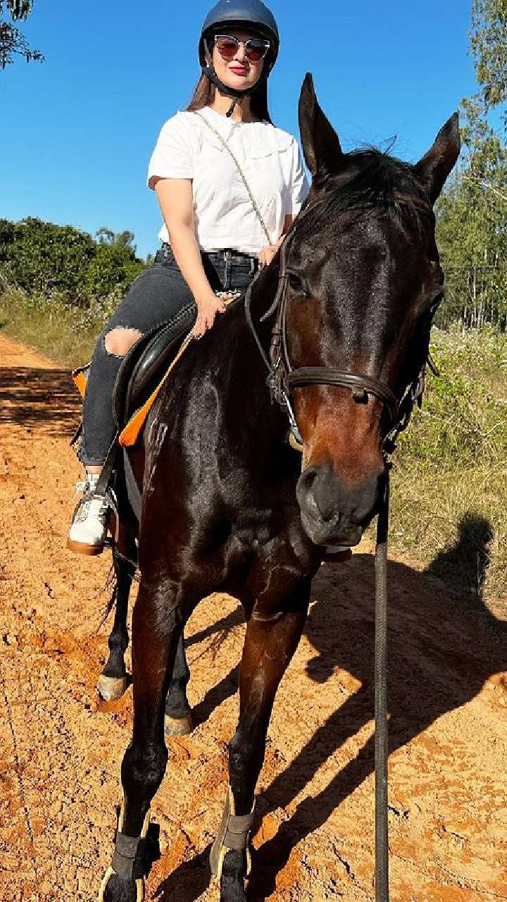 सोशल मीडिया पर एक्ट्रेस ने घुड़सवारी की फोटोज शेयर की है, जिसमें वो घोड़े पर बैठी नजर आ रही है।