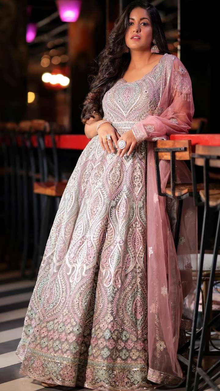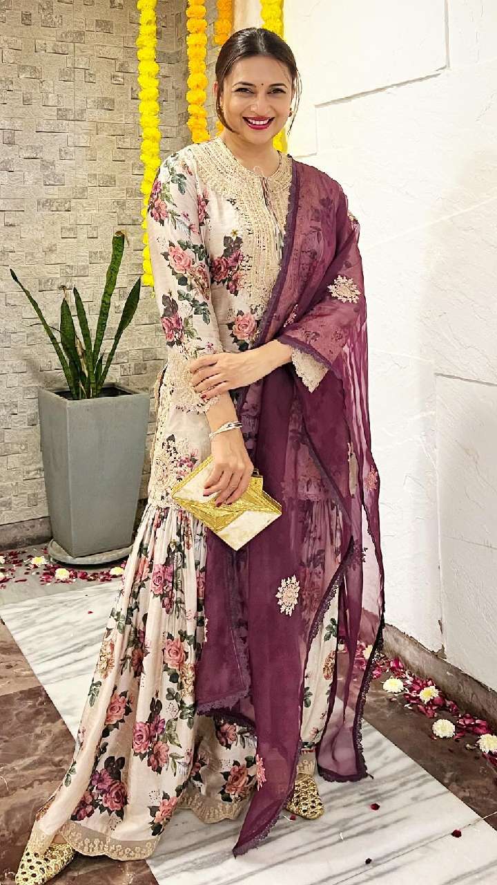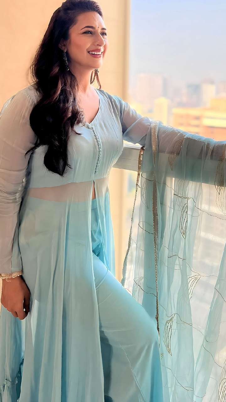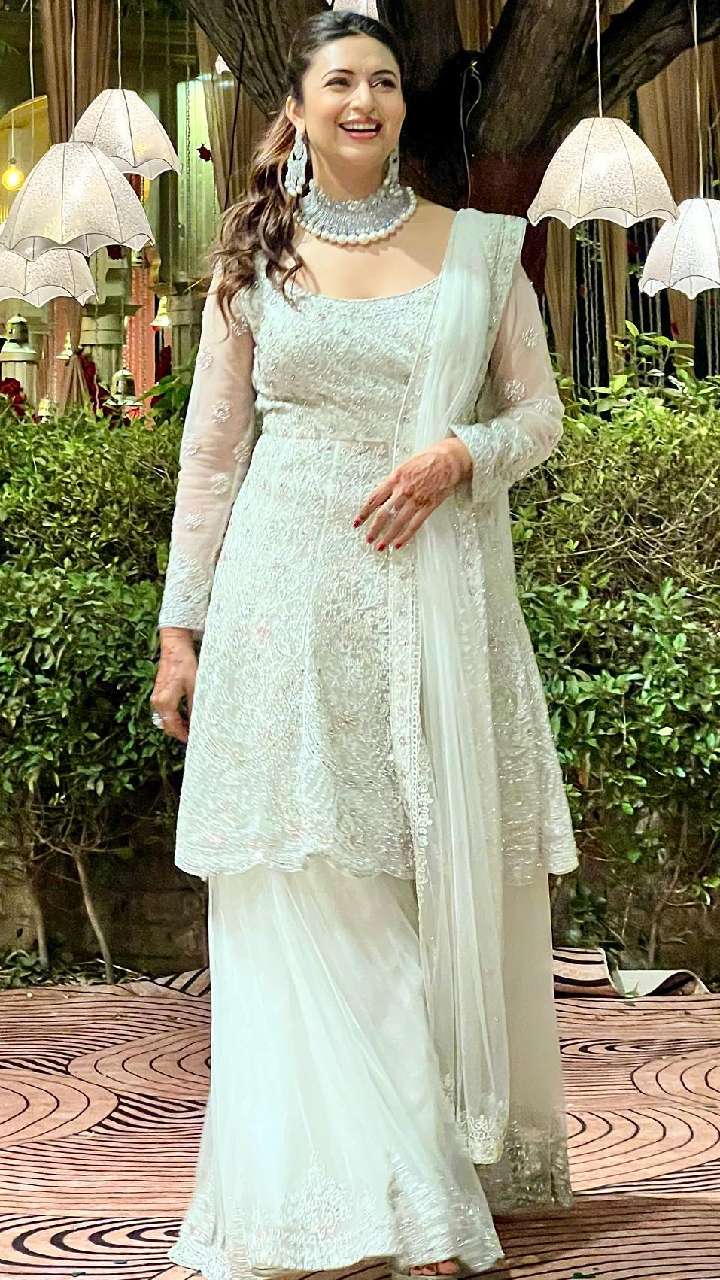 अगर आप हैवी वर्क कैरी करना पसंद करती हैं तो आप दिव्यांका के इस शरारा सूट को कैरी कर सकती हैं।