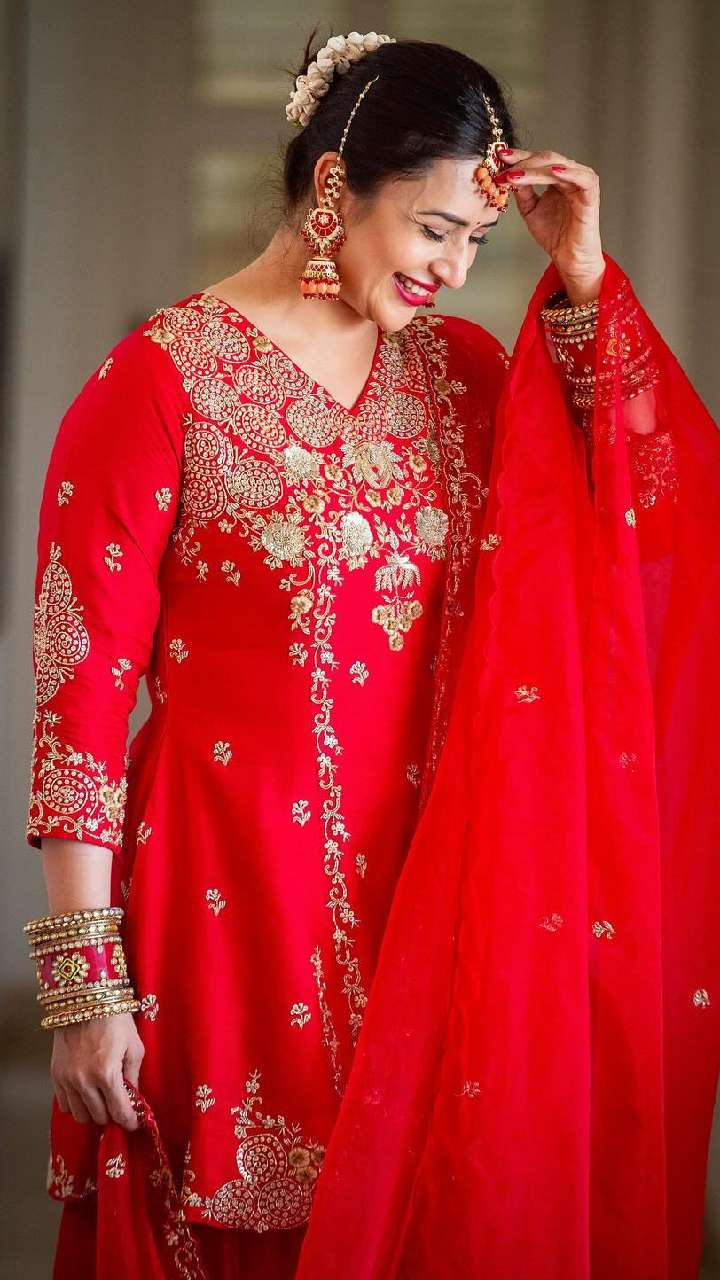 इस रेड कलर के सूट में दिव्यांका काफी ज्यादा खूबसूरत लग रहीं हैं। एक्ट्रेस का ये लुक नई दुल्हन के लिए परफेक्ट है।