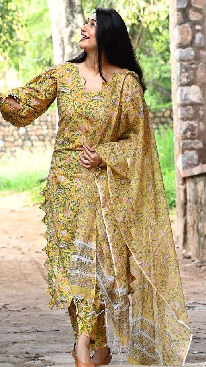 दिव्यांका ने फ्लावर प्रिंट प्लाजो सूट कैरी किया है, जिसमें वह बला की खूबसूरत लग रही हैं। ऐसे सूट को आप ऑफिस में पहनकर खूबसूरत नजर आ सकती हैं।