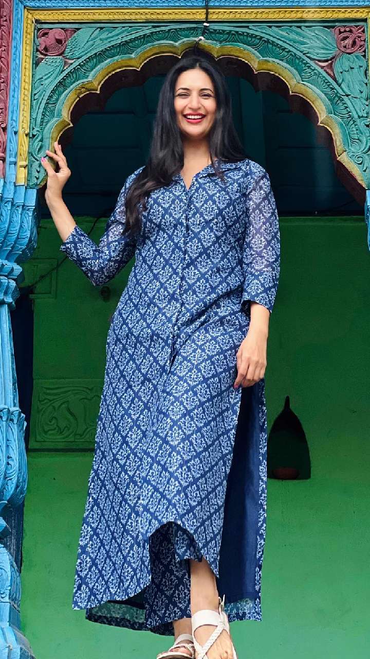 ऑफिस के लिए दिव्यांका के जैसा प्रिंटेड कॉलर पेंट सूट बेस्ट ऑप्शन है। इसमें आपका लुक एकदम डिसेंट नजर आएगा।