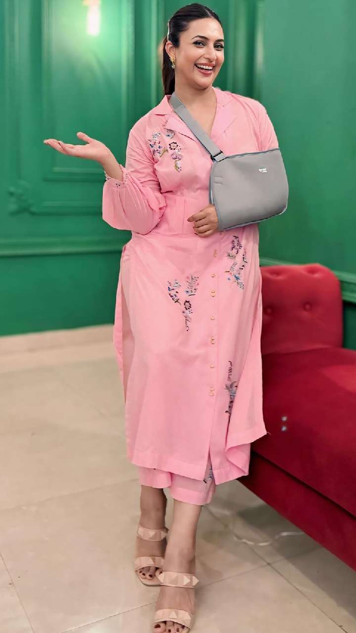 सिंपल सोबर सूट में भी दिव्यांका त्रिपाठी बहुत सुंदर लगती हैं। पिंक कलर के प्लेन सूट में भी एक्ट्रेस का लुक शानदार लग रहा है।
