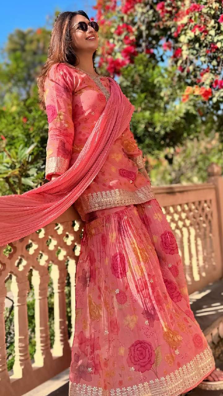 अगर आप डेली वियर में कुछ लाइटवेट सूट ट्राई करना चाहती हैं, तो एक्ट्रेस के जैसा प्रिंटेड शरारा सूट लुक को रीक्रिएट करें।