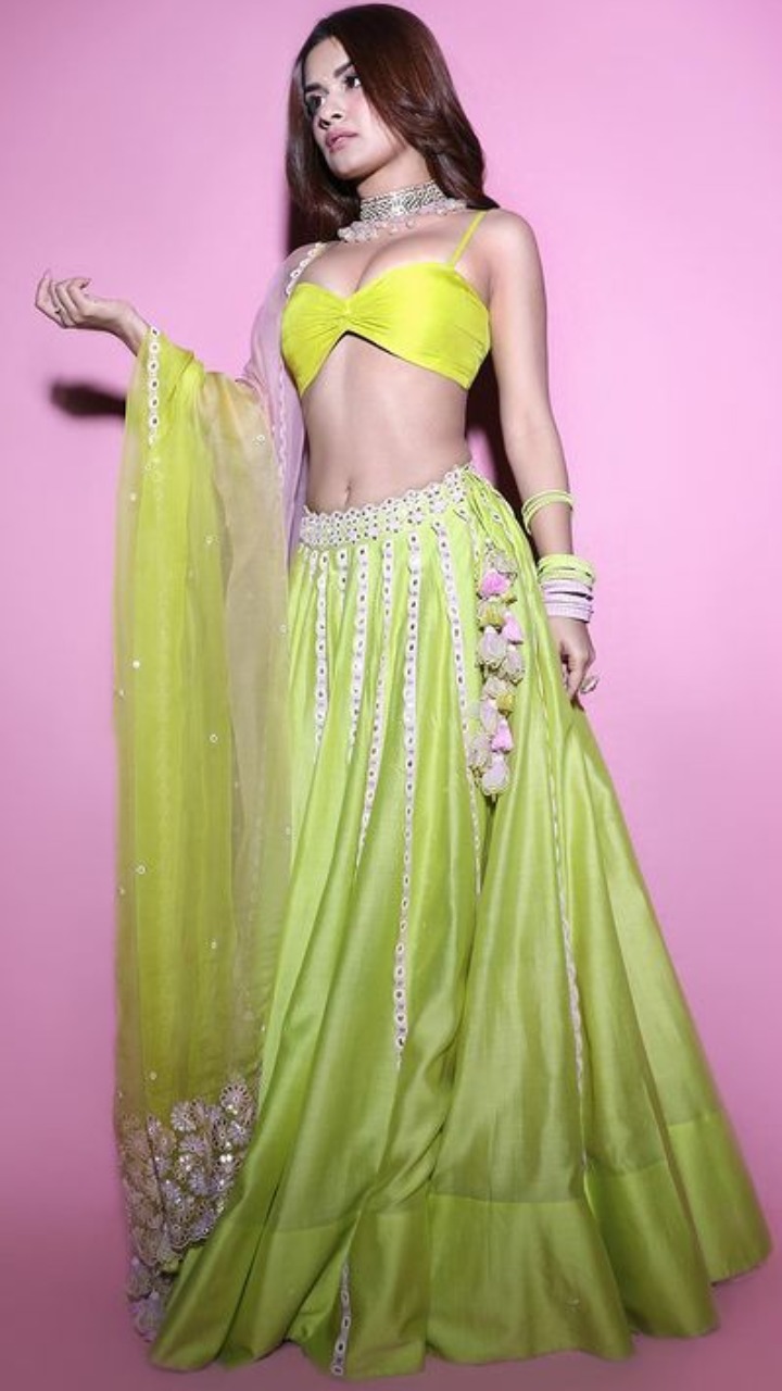 अवनीत कौर का लहंगा दिवाली पर चार चांद लग रहा हैं। एक्ट्रेस ने लहंगे साथ ही चोकर नेकलेस को कैरी किया हैं।