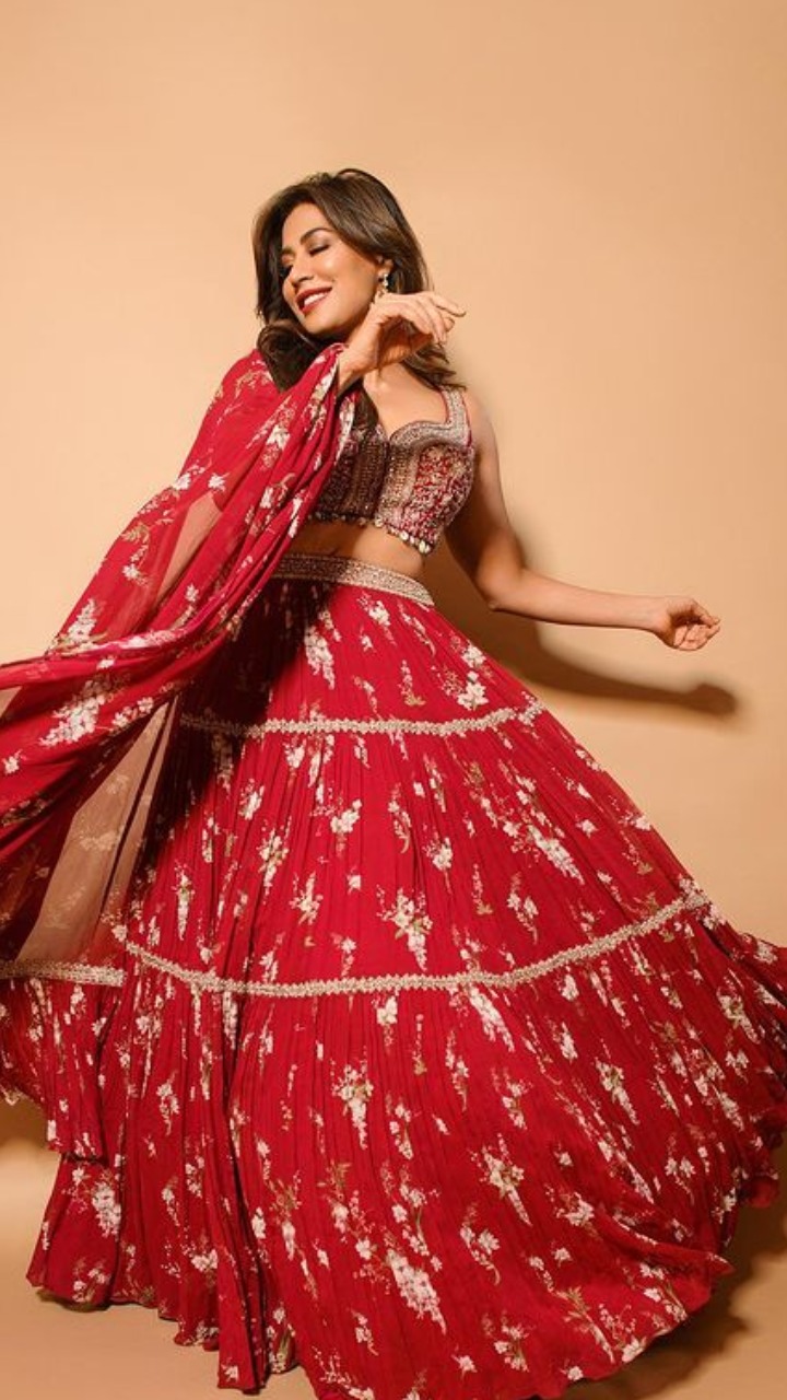 चित्रागंदा सिंह रेड कलर के लहंगे में अप्सरा सी खूबसूरत दिख रही हैं।