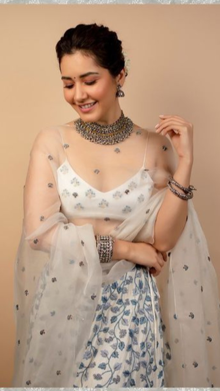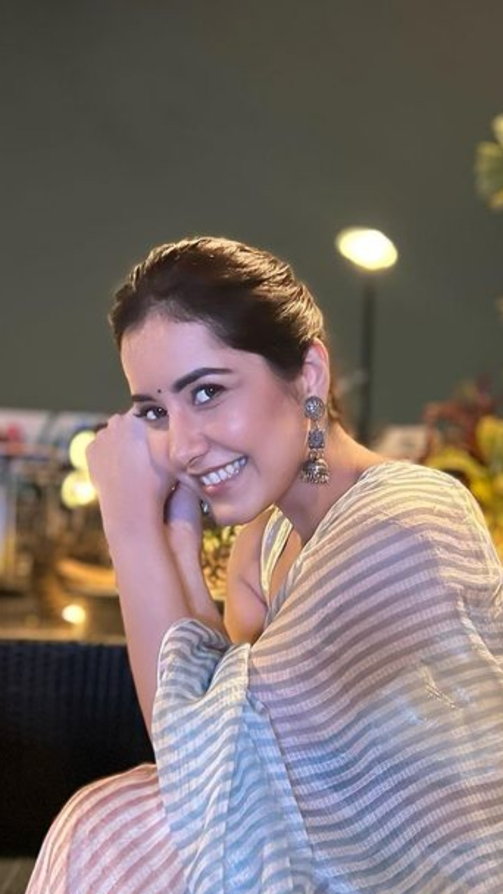 राशि ने तस्वीर में जरी फोइल वर्क वाली सॉफ्ट जॉर्जेट साड़ी पहनी हुई हैं। उनका ये ट्रेडिशनल अंदाज काफी आकर्षक हैं।