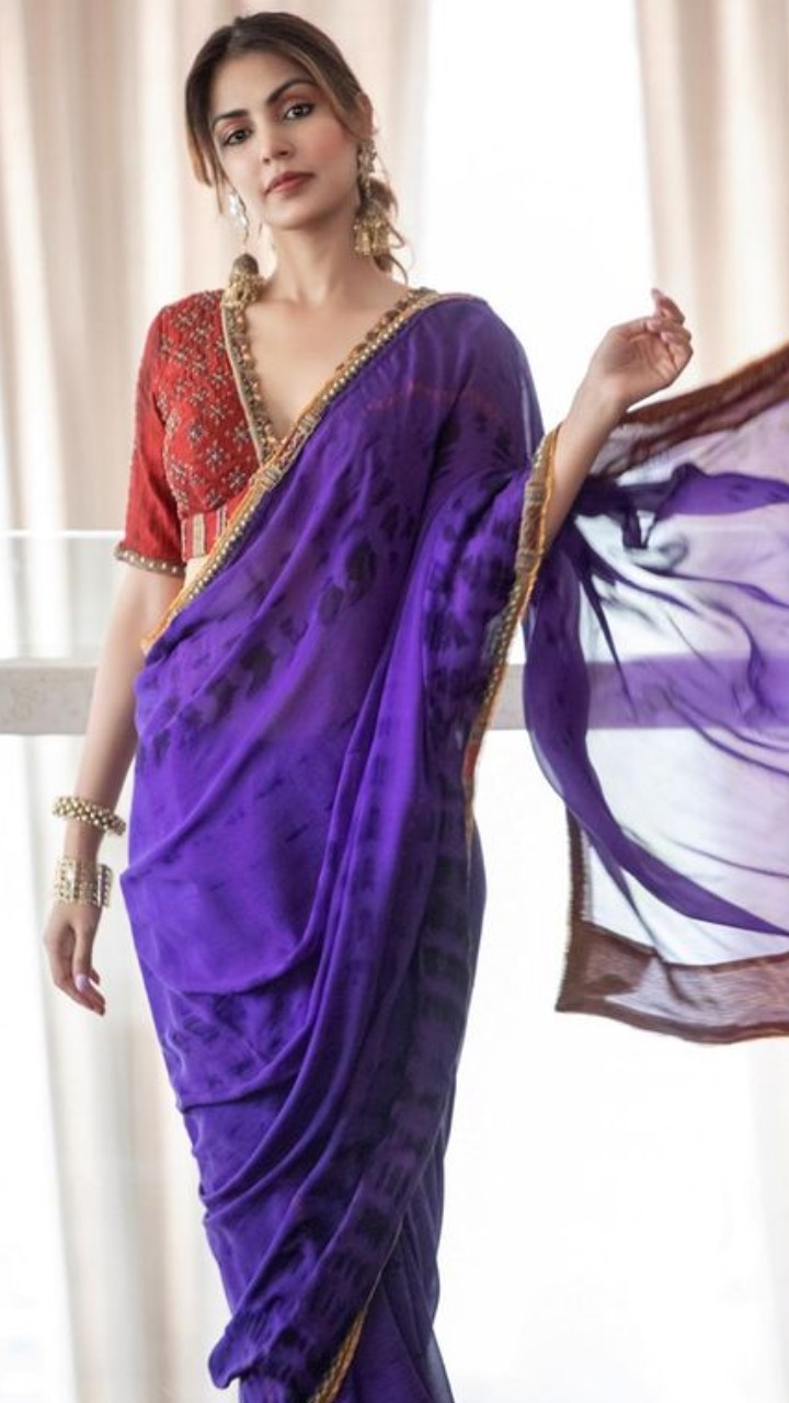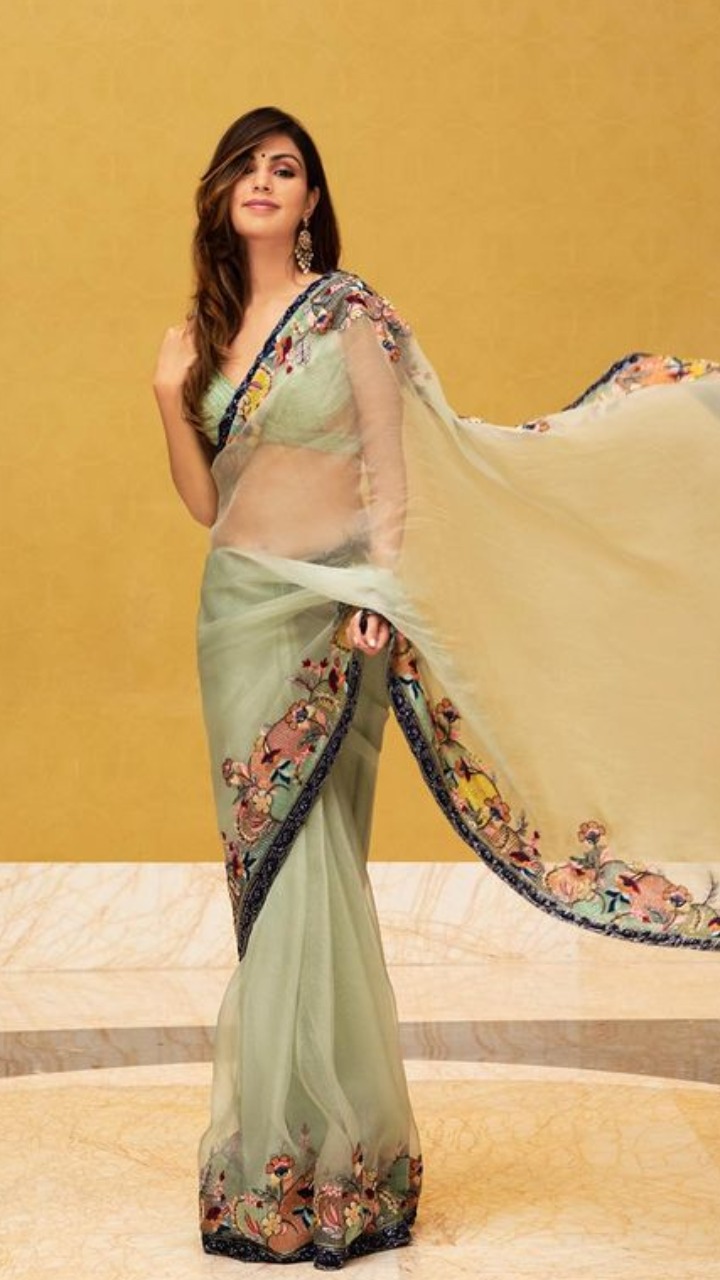 रिया चाक्रवार्ती की ये खूबसूरत साड़ी दिवाली फेस्टिवल के लिए एकदम परफेक्ट हैं।
