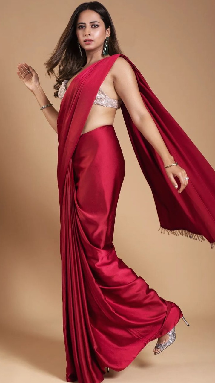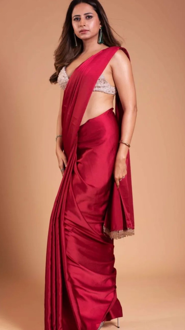 टीवी एक्ट्रेस सरगुन महेता रेड साड़ी में हद से ज्यादा हॉट दिख रही हैं।
