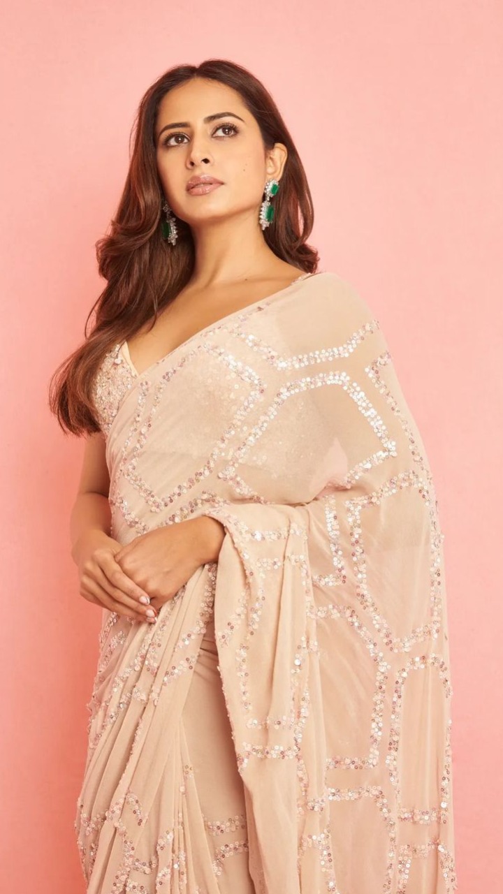 सरगुन ने साड़ी के साथ डिजाइनिंग ब्लाउज को कैरी किया हैं, जो लोगों को काफी अट्रैक्टिव दिख रहा हैं