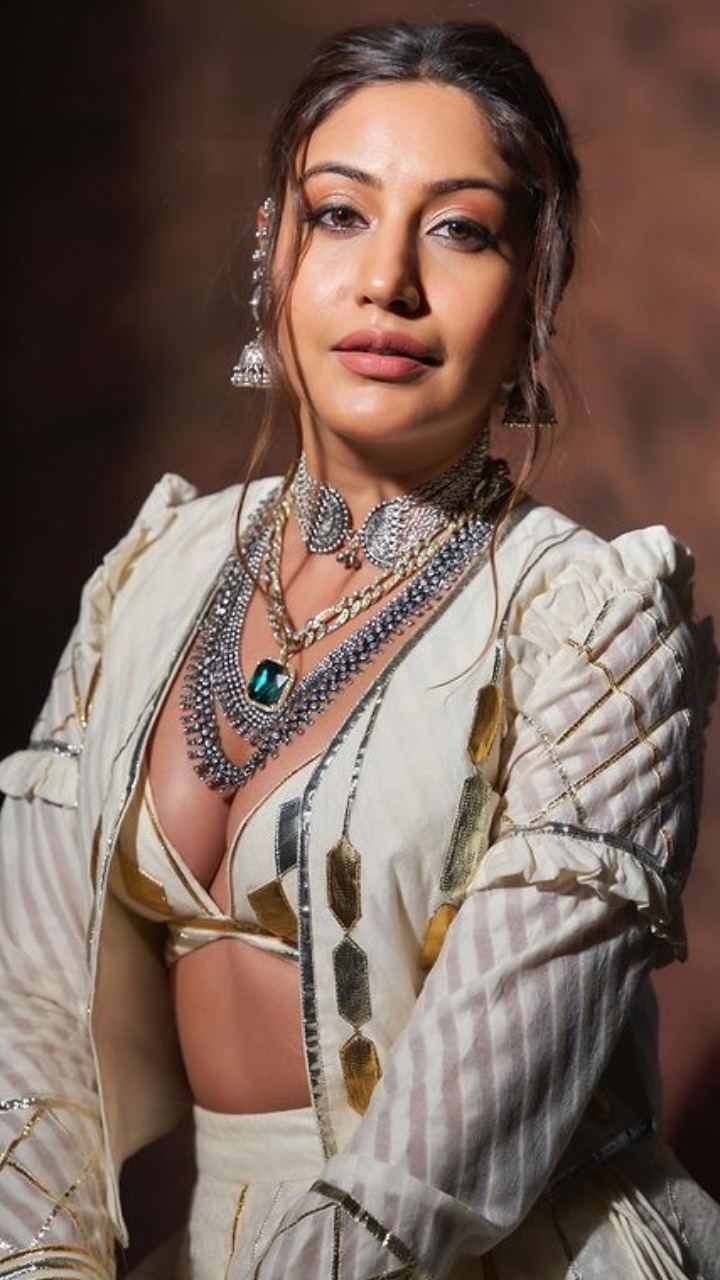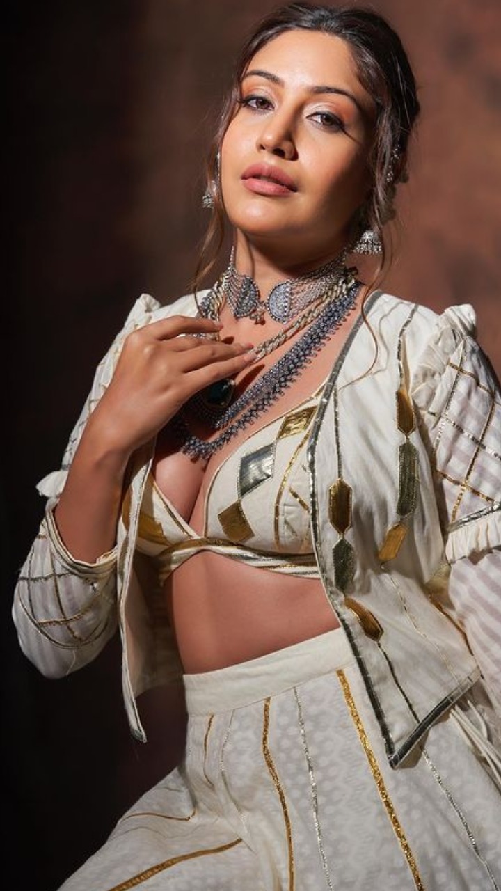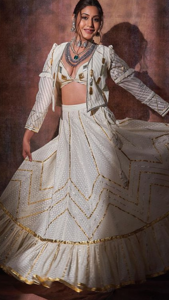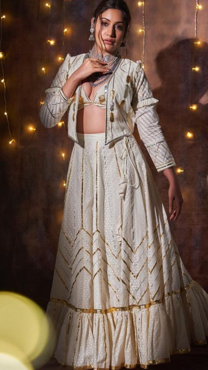 सुरभि चंदना दिवाली स्पेशल व्हाइट लहंगा में बला की खूबसूरत लग रही हैं।