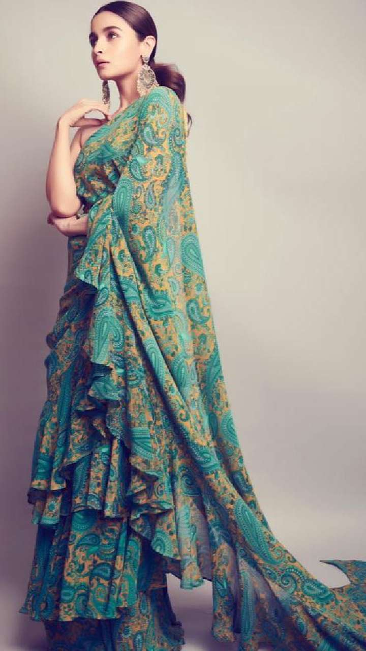 बॉलीवुड में कई ऐसी एक्ट्रेसेज हैं जिन्होंने रफल साड़ी लुक्स कैरी किए हैं। आलिया भट्ट का ये ग्रीन रफल साड़ी लुक कमाल का है।