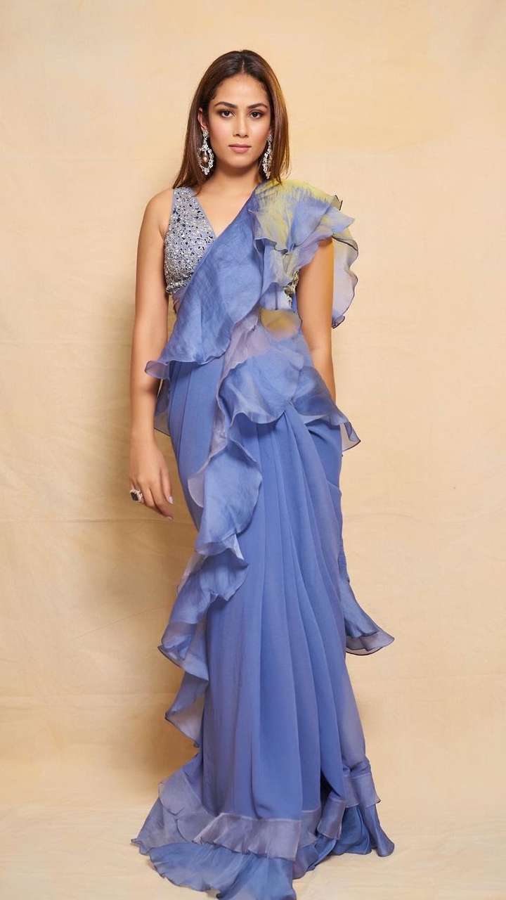 फिलहाल रफल साड़ी काफी ज्यादा ट्रेंड में चल रहीं हैं। अगर आप साड़ी कैरी करने का प्लान कर रहीं हैं तो रफल साड़ी लुक कैरी करें।