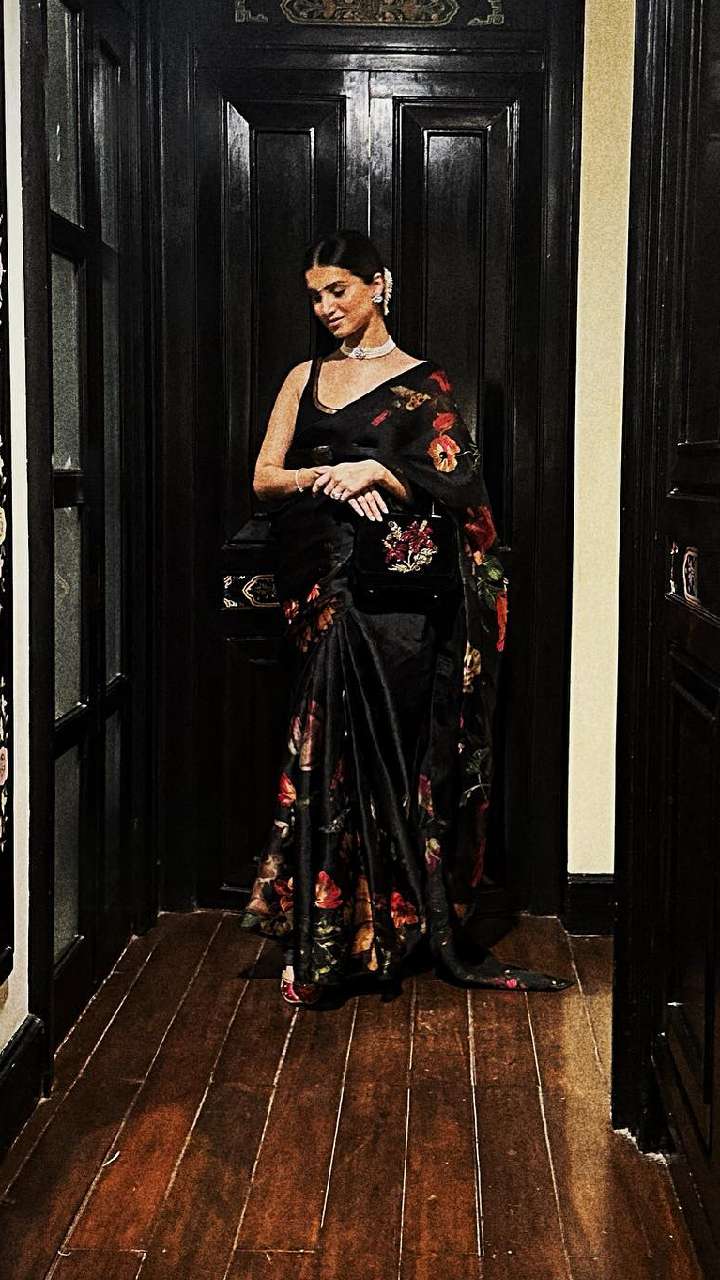 अगर आप ब्लैक लवर हैं तो आपको तारा सुतारिया का ये ब्लैक साड़ी लुक बहुत पसंद आएगा।