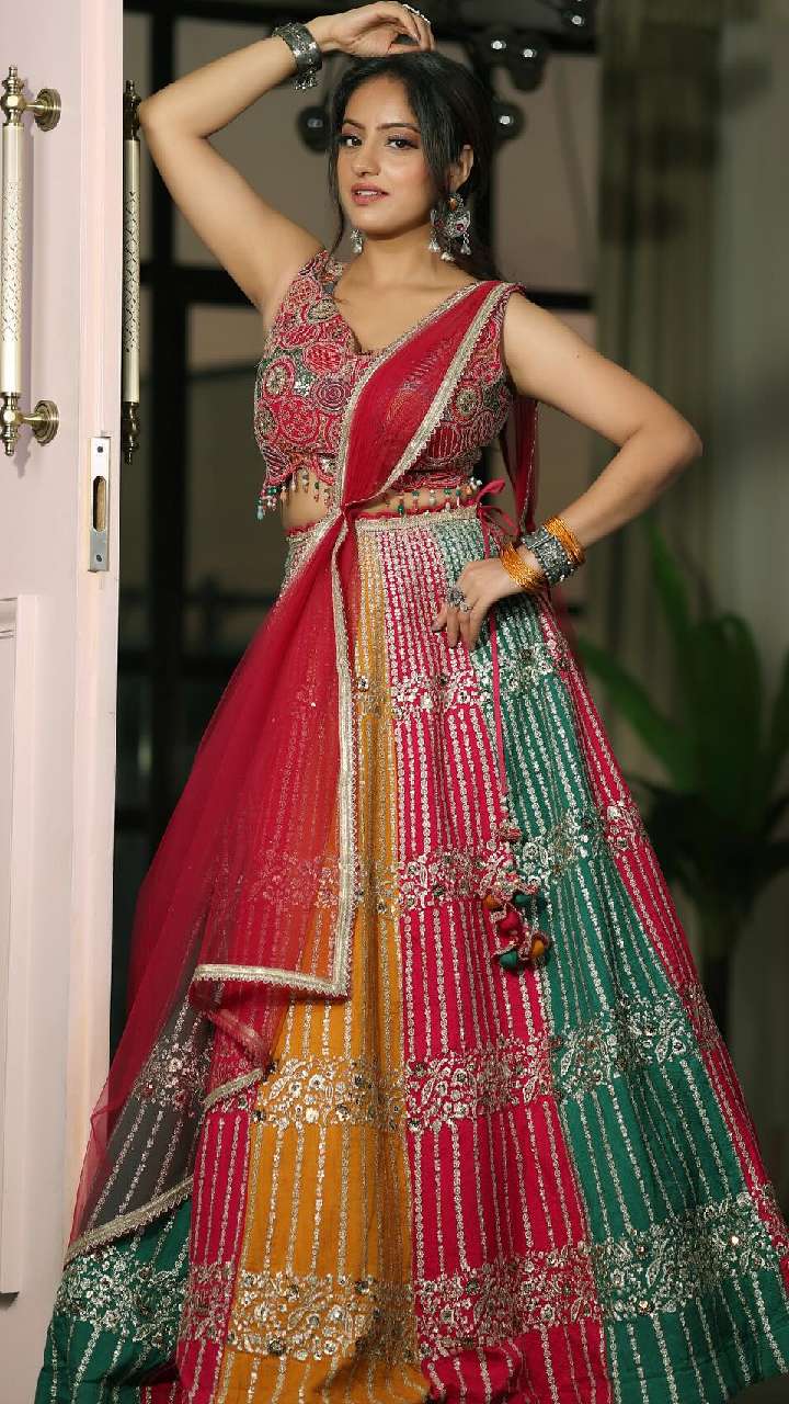 दोस्त की शादी हो या फिर फैमिली फंक्शन ऐसे लहंगा को स्टाइल करके गॉर्जियस लग सकती हैं। इसके साथ हैवी इयररिंग्स कैरी करके लुक को कंप्लीट करें।