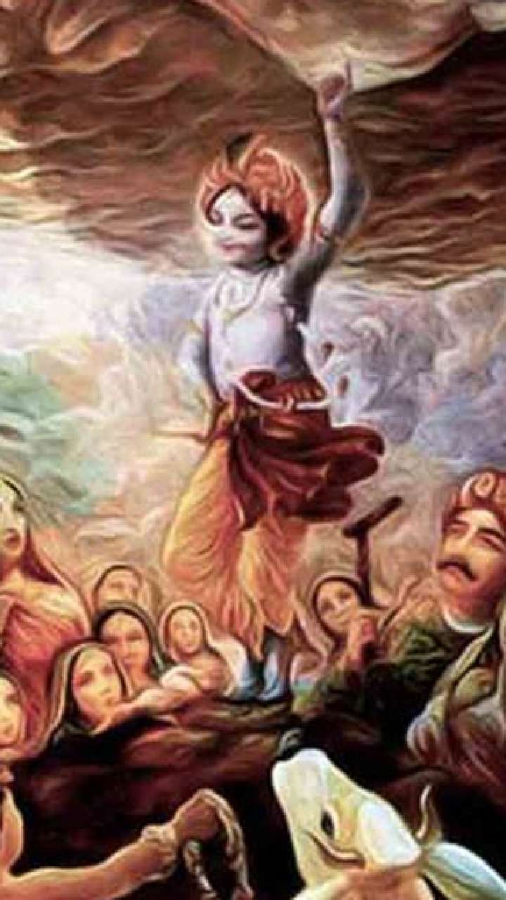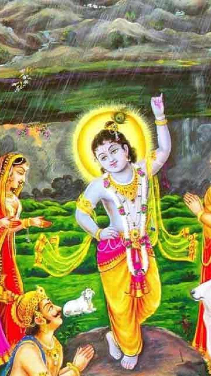 एक बार इंद्र देव ने भारी वर्षा की थी, जब भगवान कृष्ण ने गोवर्धन पर्वत को अपनी सबसे छोटी उंगली पर धारण कर समस्त गांव वासियों की रक्षा की थी।