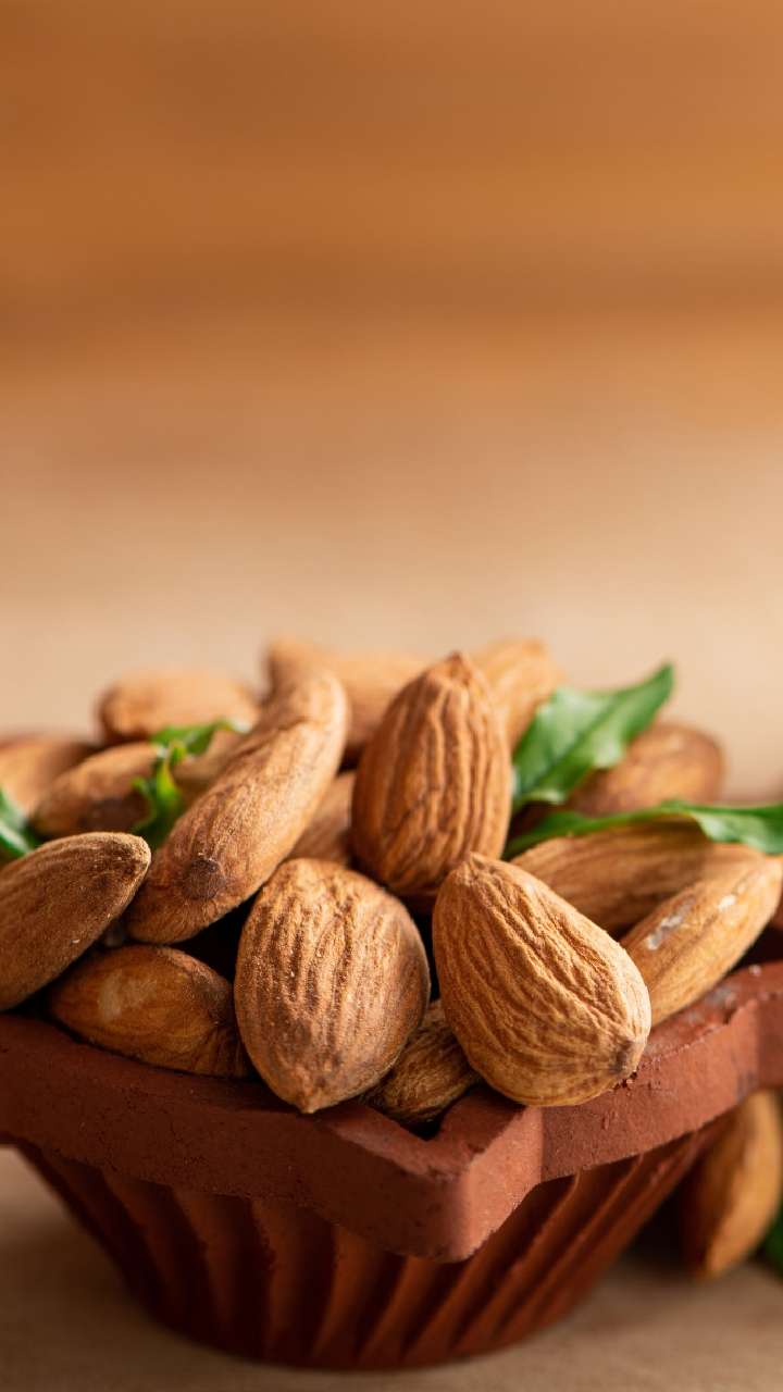 बादाम में प्रोटीन, फाइबर, स्वस्थ वसा, विटामिन-ई, मैग्नीशियम, कैल्शियम, फास्फोरस, जिंक और आयरन जैसे कई पोषक तत्व होते हैं।
