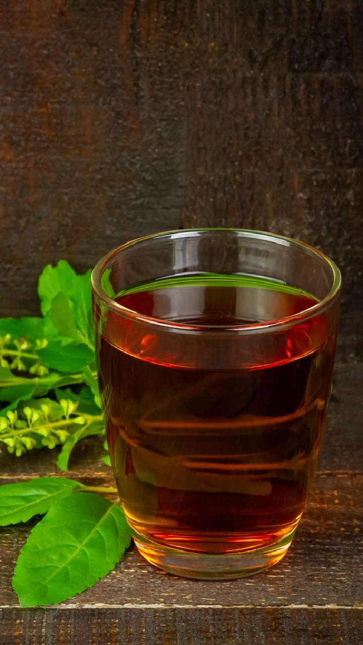 तुलसी का काढ़ा बनाने के लिए एक पैन में एक गिलास पानी गर्म करें। इसमें 5-6 तुलसी की पत्ती, लौंग, अदरक और काली मिर्च डालकर उबाल लें। जब पानी आधा रह जाए, तो इसे छानकर गुनगुना करके पिएं।