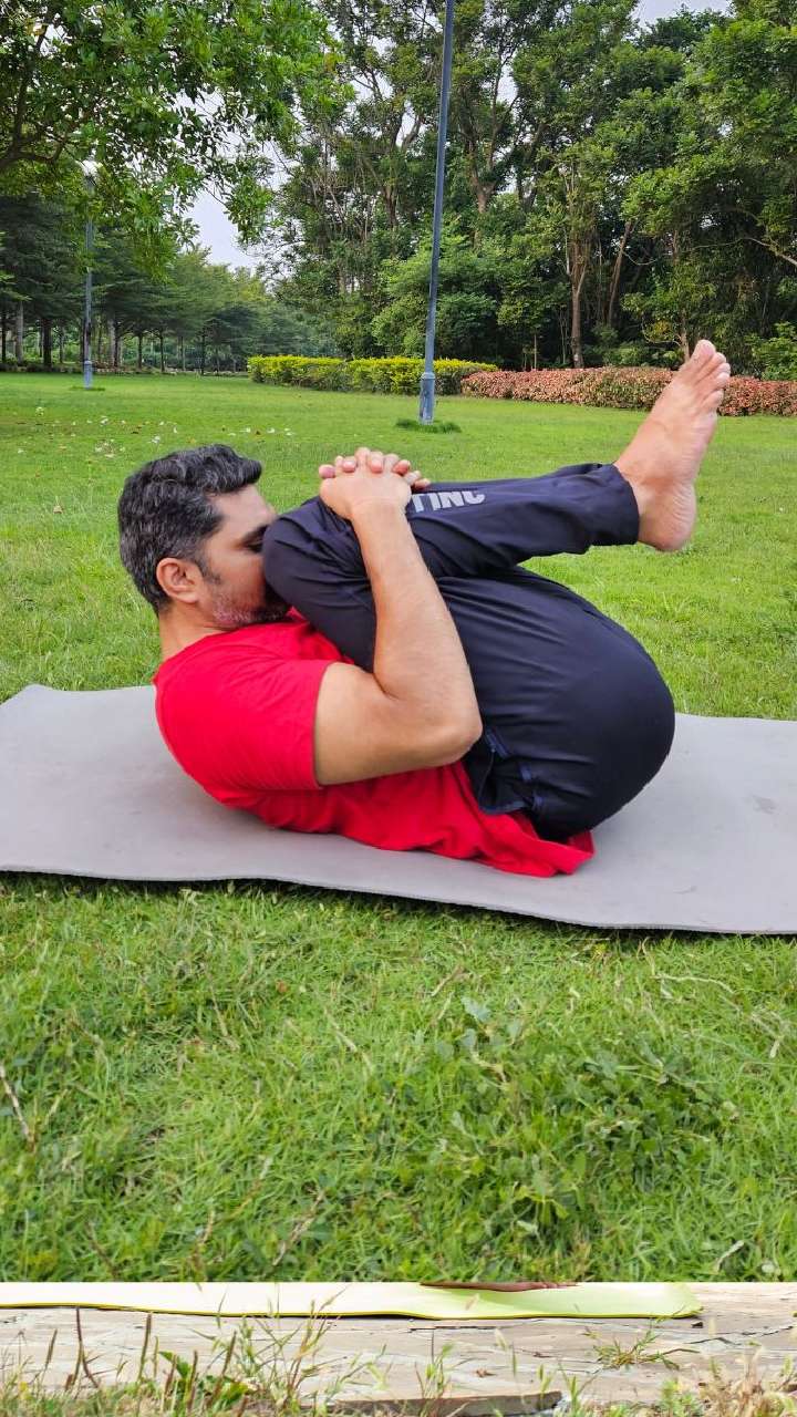पीठ के बल लेटकर घुटनों को छाती की ओर लाएं। यह पेट की गैस और कब्ज कम करता है, पाचन सुधारता है और पेट की मांसपेशियों को मजबूत बनाता है।