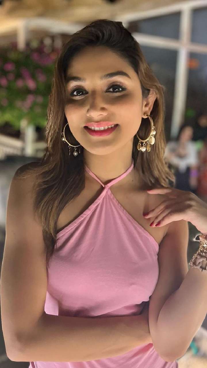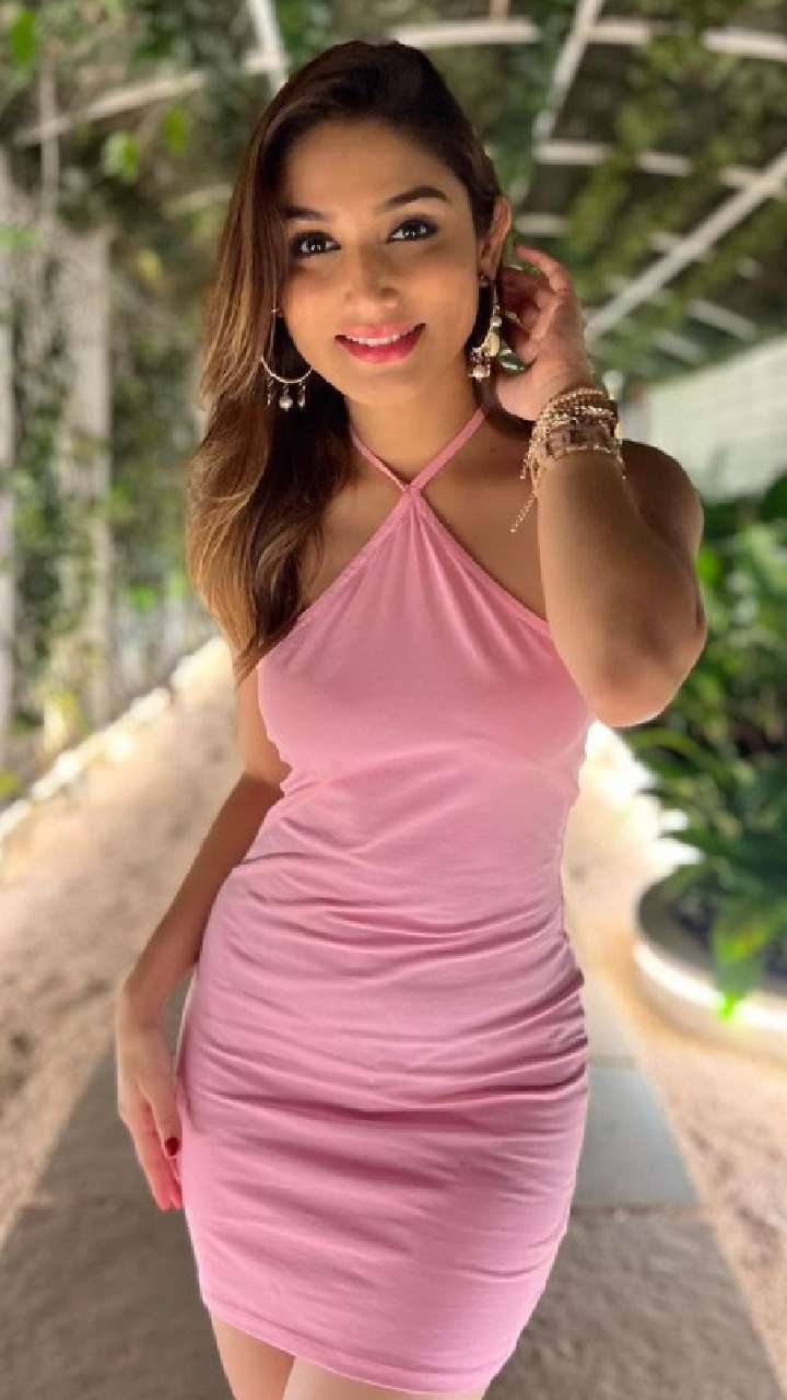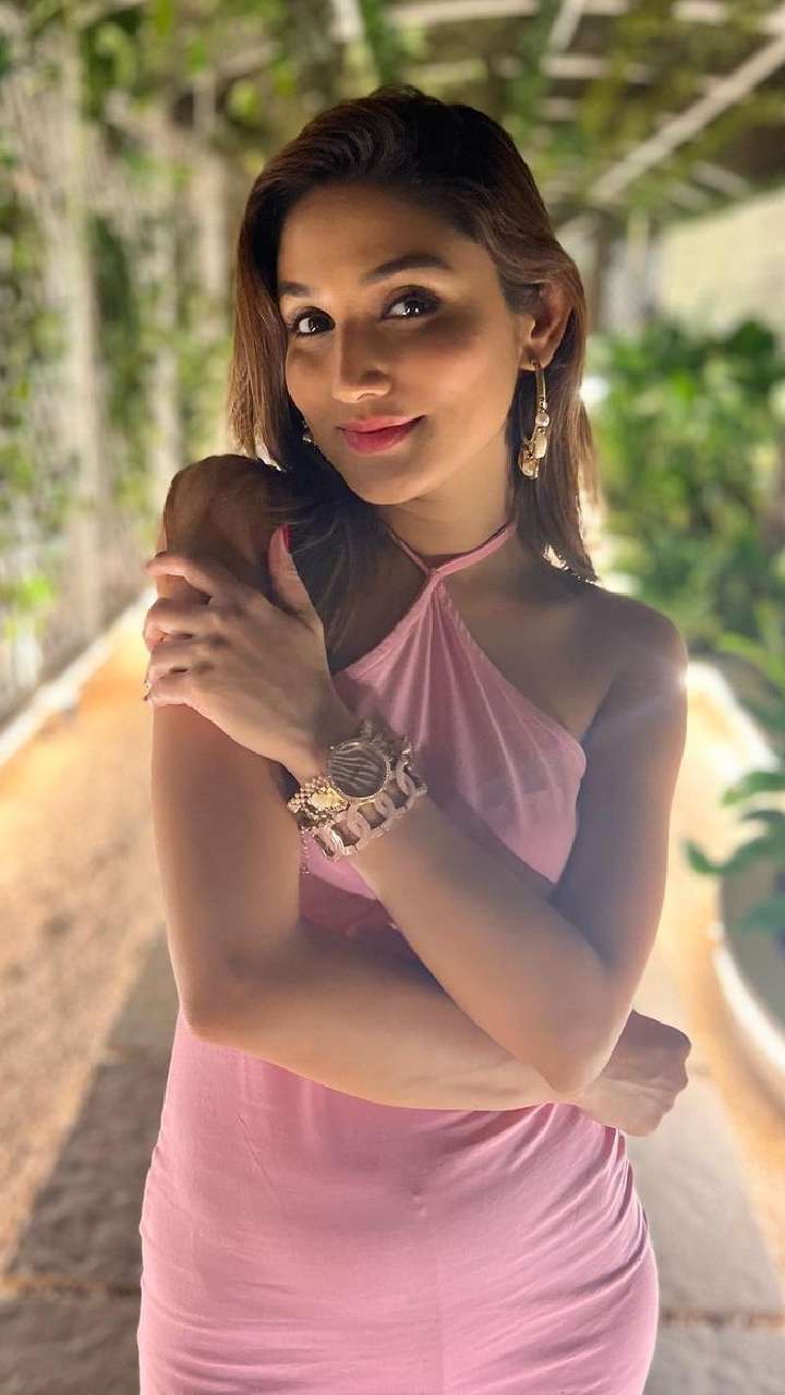 तस्वीर में एक्ट्रेस ने लाइट पिंक कलर की स्लीवलेस बॉडी फिट ड्रेस पहना हुआ है।