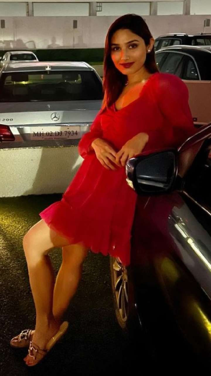 रेड कलर का फ्रॉक पहने एक्ट्रेस बेहद गॉर्जियस लुक देती नजर आ रही हैं।