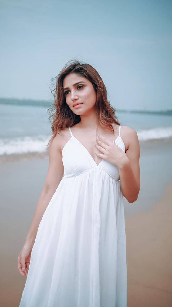 बिग बॉस फेम डोनल व्हाइट स्ट्रेप गाउन में हॉटनेस क्वीन दिख रही हैं।