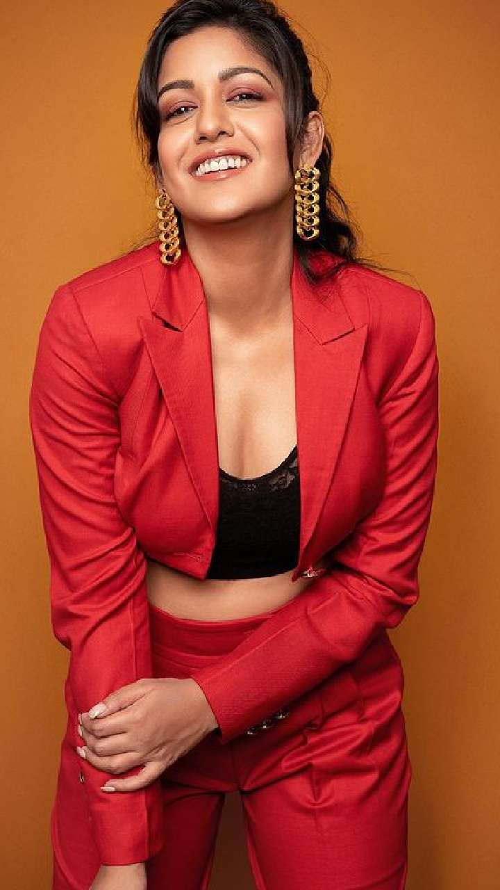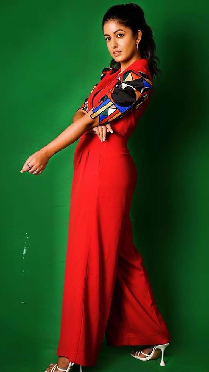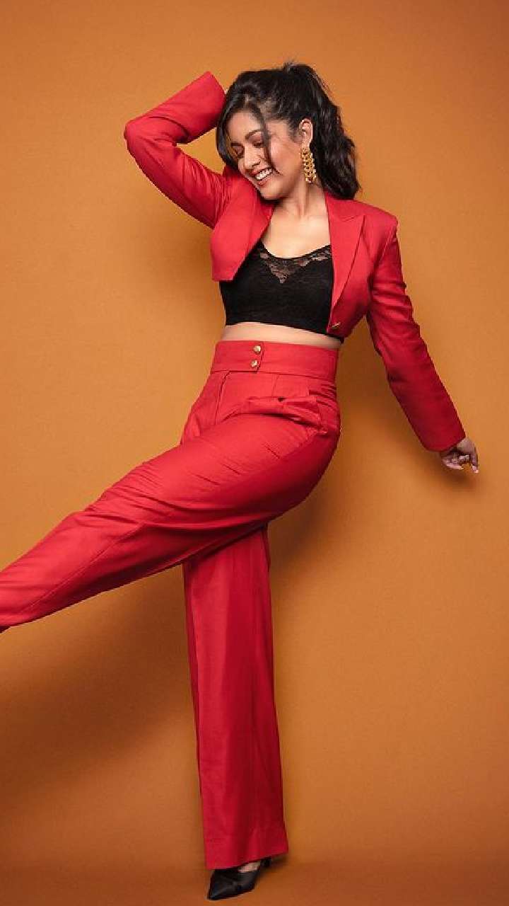 दृश्यम 2 एक्ट्रेस इशिता ने रेड फॉर्मल आउटफिट के साथ ही ब्लैक ब्रालेट को भी कैरी किया है, जो काफी आकर्षित लग रहा हैं।