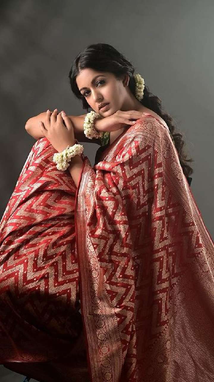 एक्ट्रेस रेड आउटफिट के साथ ही गोल्डन झुमके को पहना है, जो इशिता को क्रिसमस वाइव दे रहा हैं।