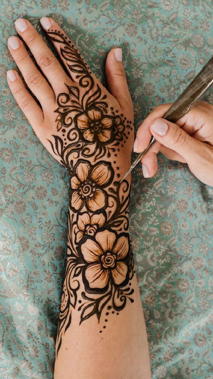 ईद के पावन त्योहार पर हाथों पर इस तरह की फ्लावर मेहंदी लगा सकती हैं। ऐसी मेहंदी डिजाइन आपके खूबसूरती में चार चांद लगा देंगी।