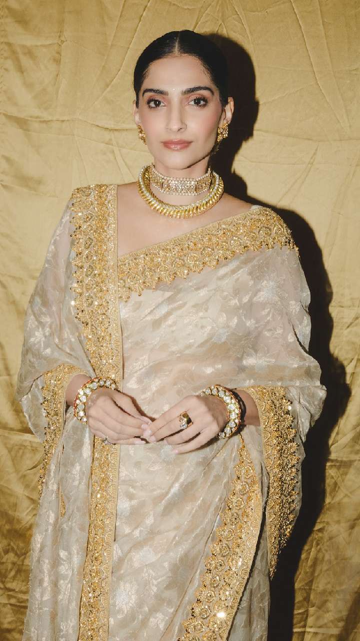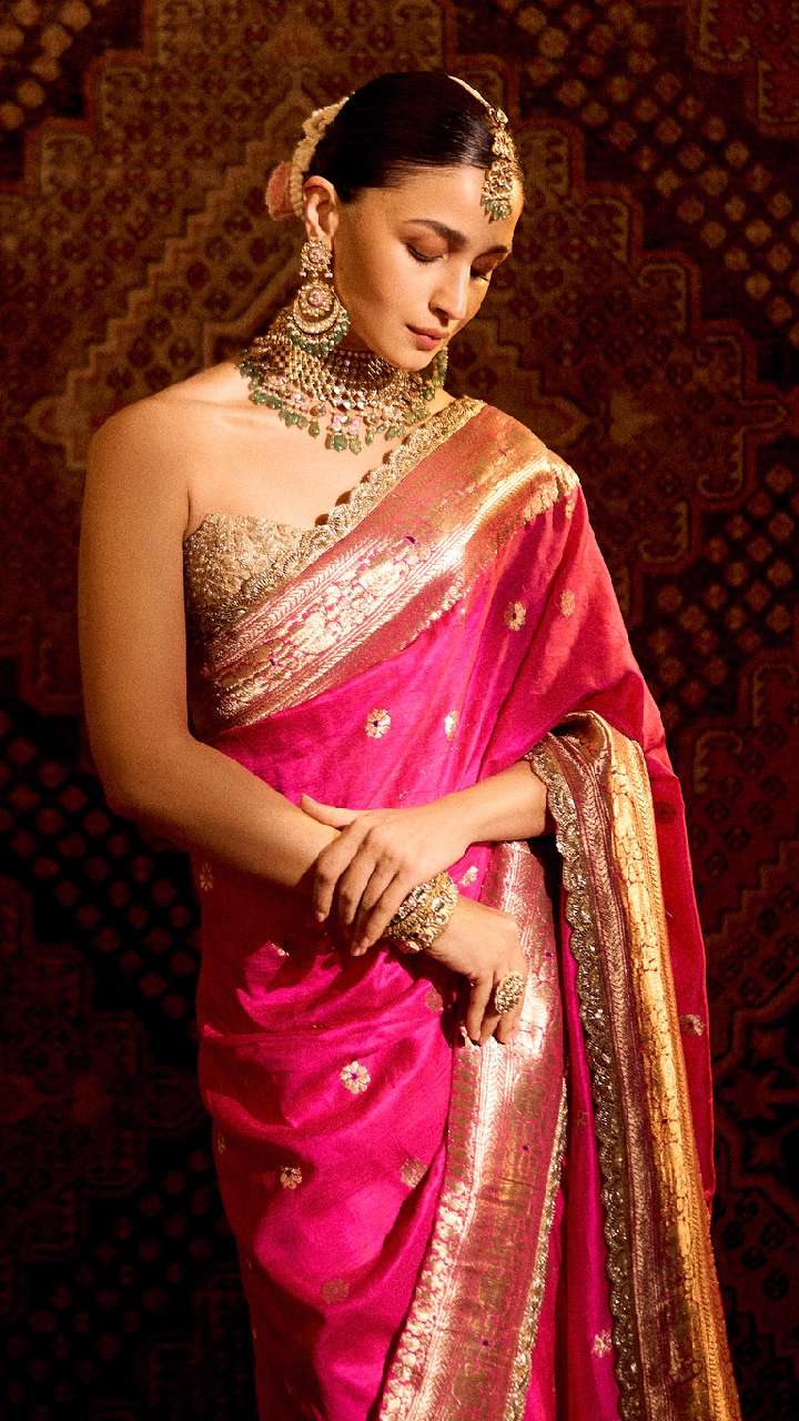सिंपल क्लच या पोटली बैग, मैचिंग बिंदी और हल्का माला या चोकर पहनें। ये छोटी-छोटी चीजें पूरे लुक को स्टाइलिश और एलीगेंट बनाती हैं।